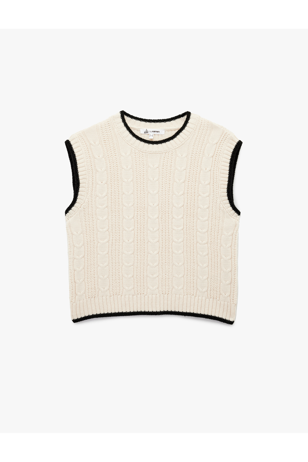 Saç Örgü Dokulu Kolsuz Biyeli Bisiklet Yaka Süveter Saç Örgü Dokulu Kolsuz Biyeli Bisiklet Yaka Süveter 6WAL20012HT L