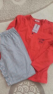 kiremit çizgi desenli Örme Pamuklu Pijama Takım25240260 kiremit çizgi desenli Örme Pamuklu Pijama Takım25240260 XL