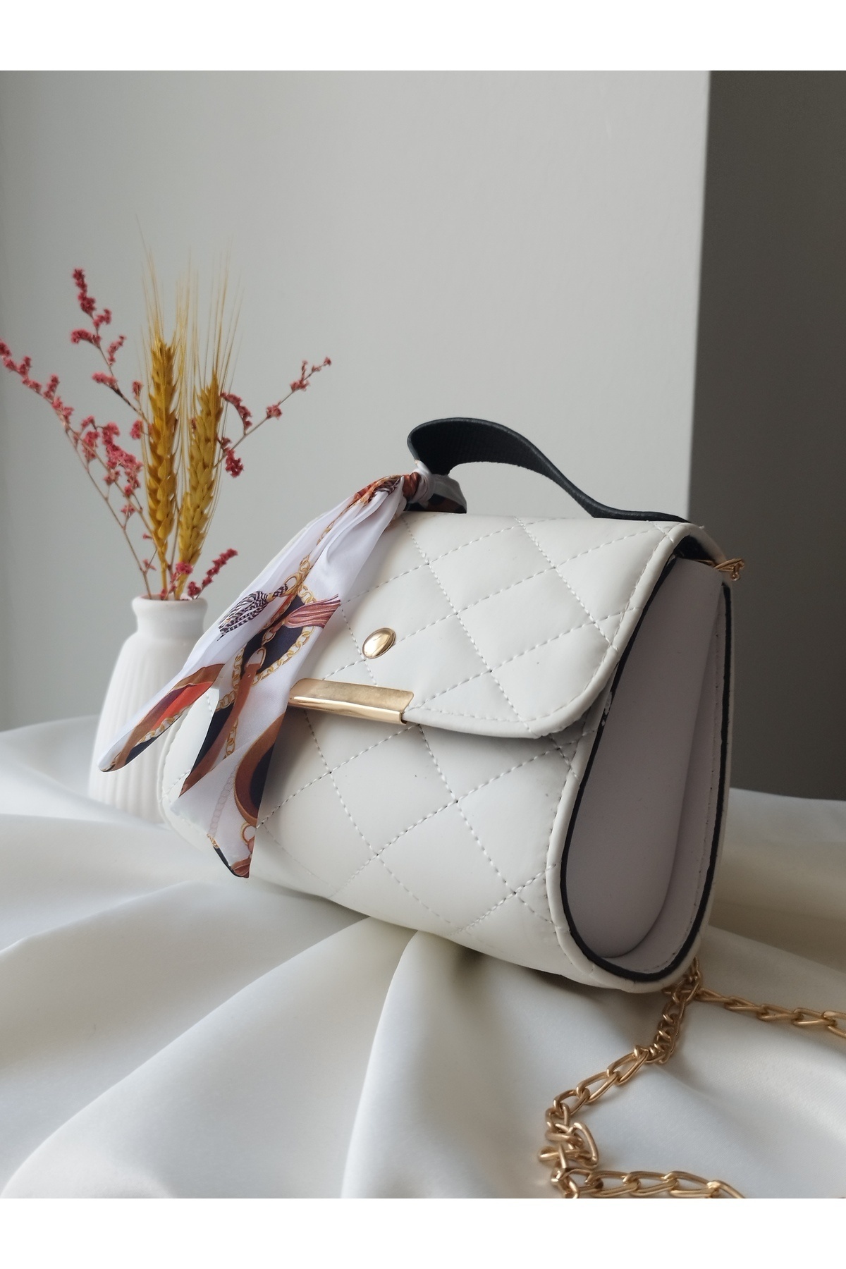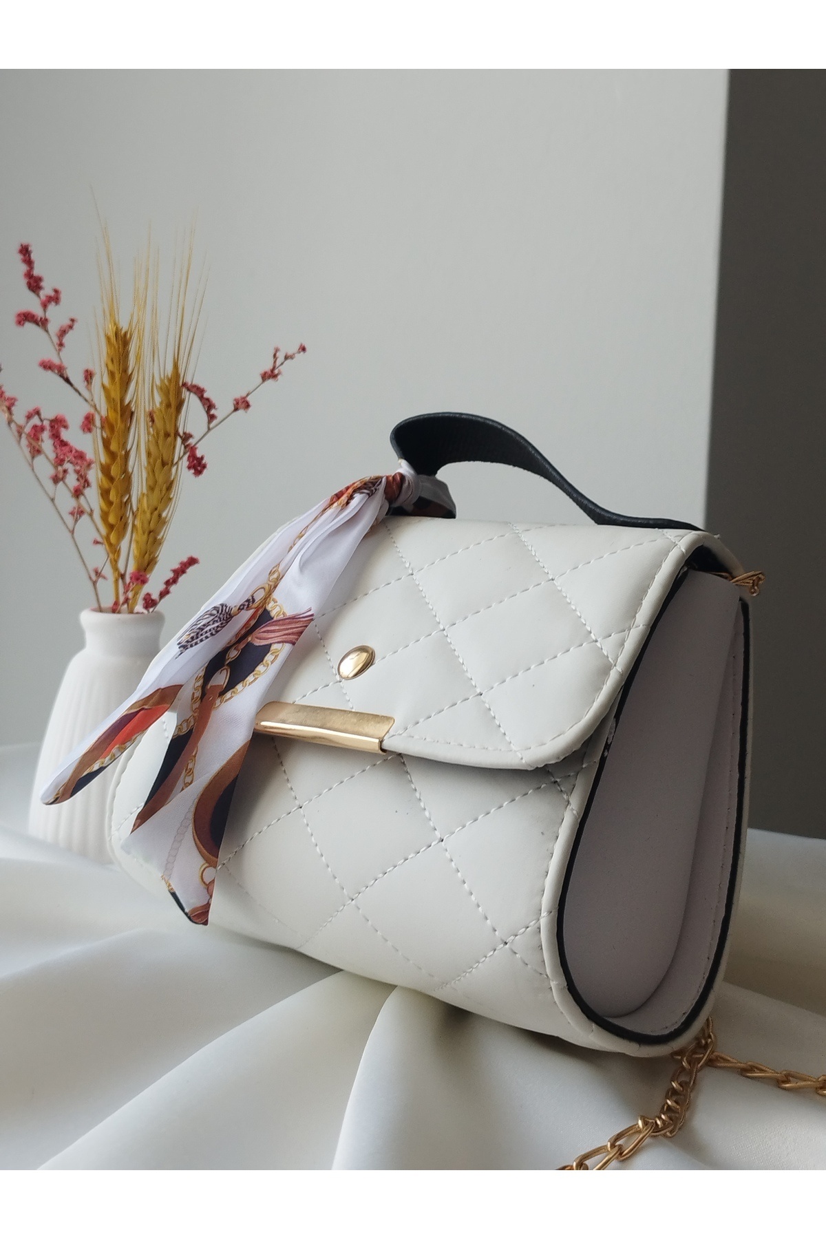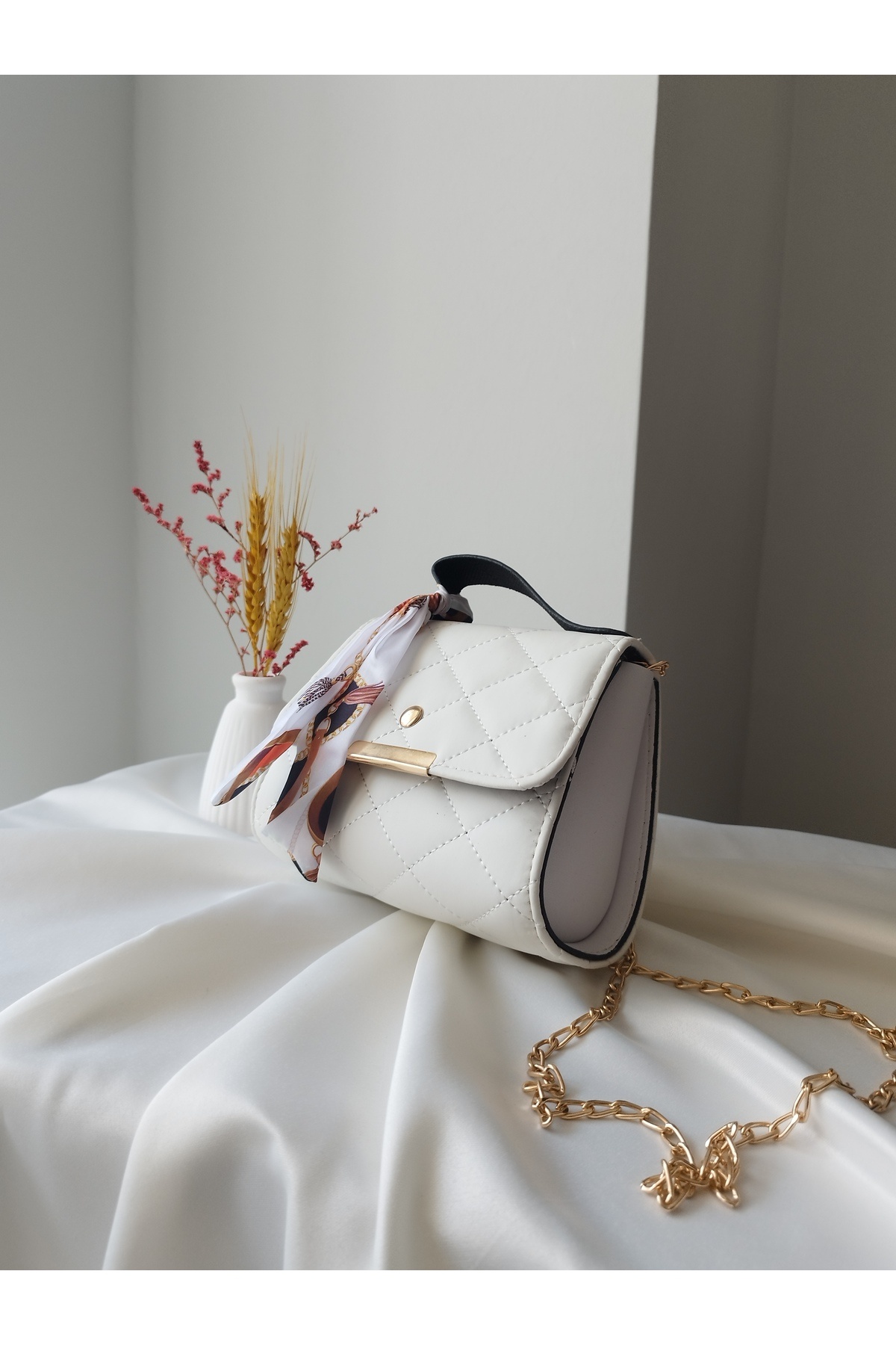 Altın Askılı Beyaz Mini Kadın El ve Omuz Çantası – Minimal ve Şık Dokunuş Altın Askılı Beyaz Mini Kadın El ve Omuz Çantası – Minimal ve Şık Dokunuş ÇAN0011 Standart