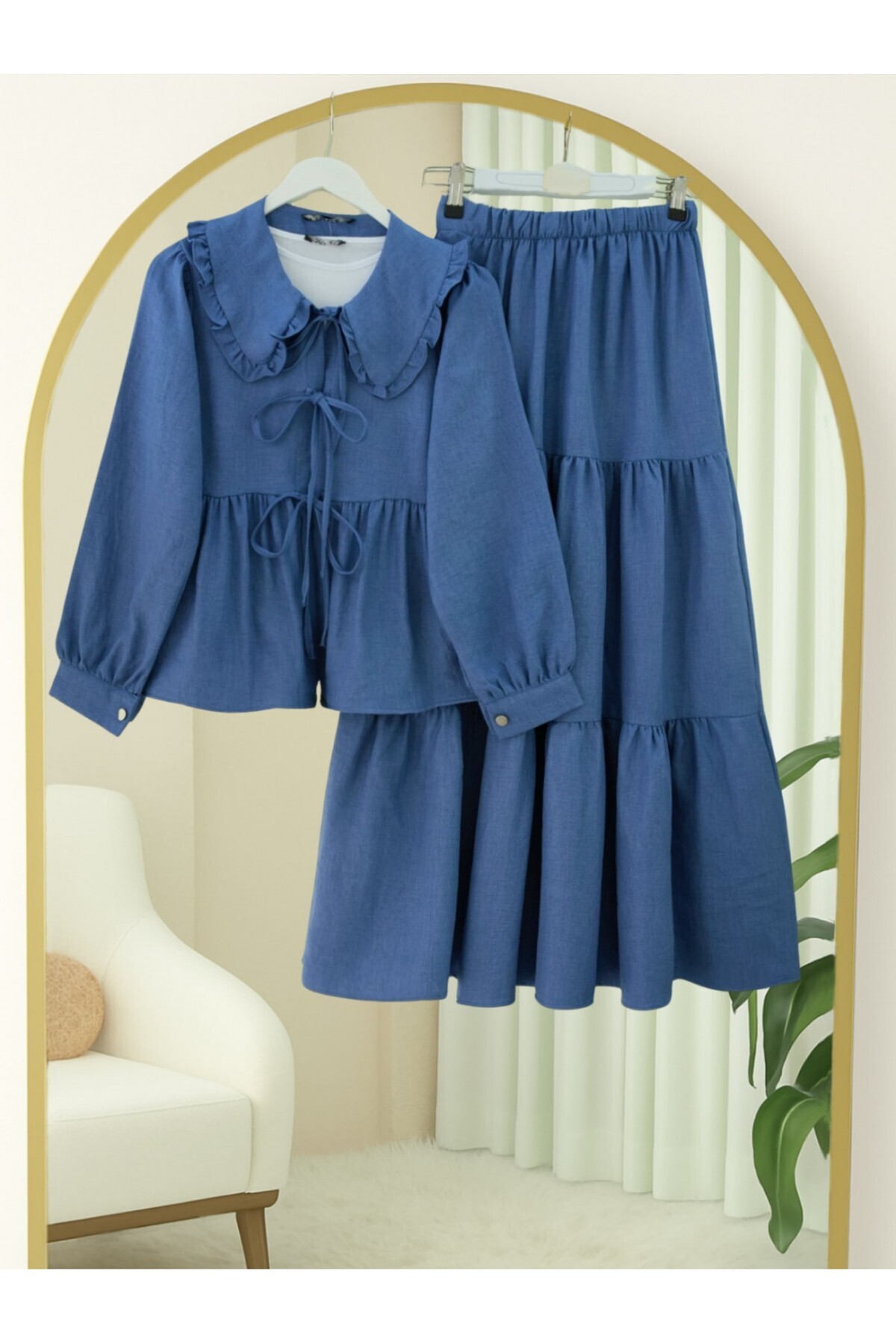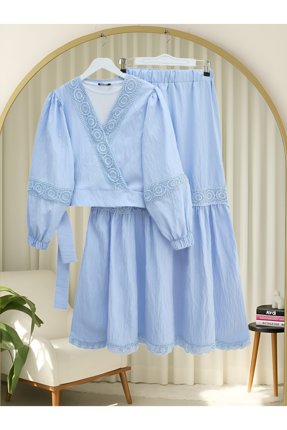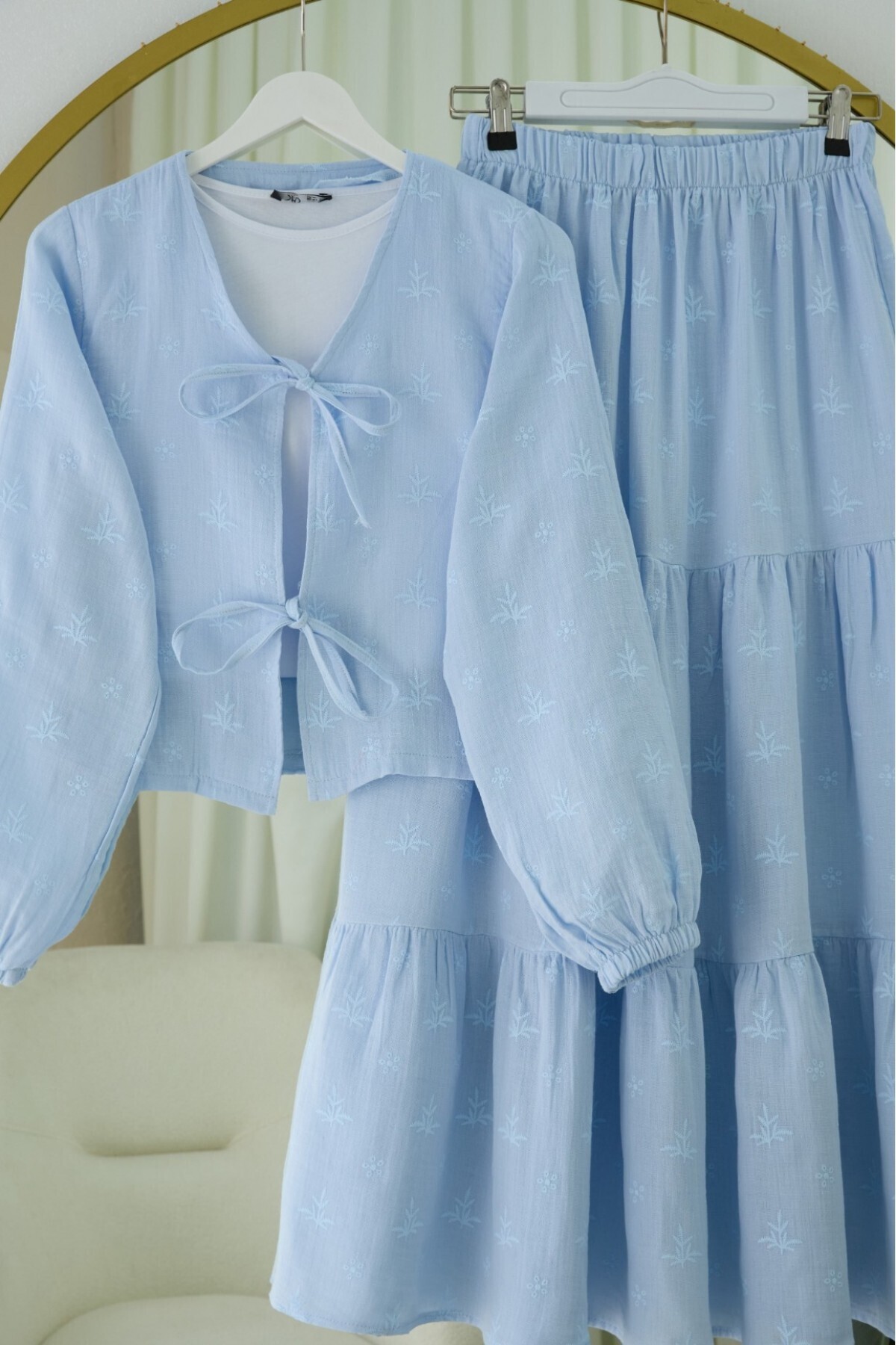 Önü Bağcıklı Nakış Detaylı Etekli Müslin Takım -Bebe Mavi Önü Bağcıklı Nakış Detaylı Etekli Müslin Takım -Bebe Mavi TY349-7061 42