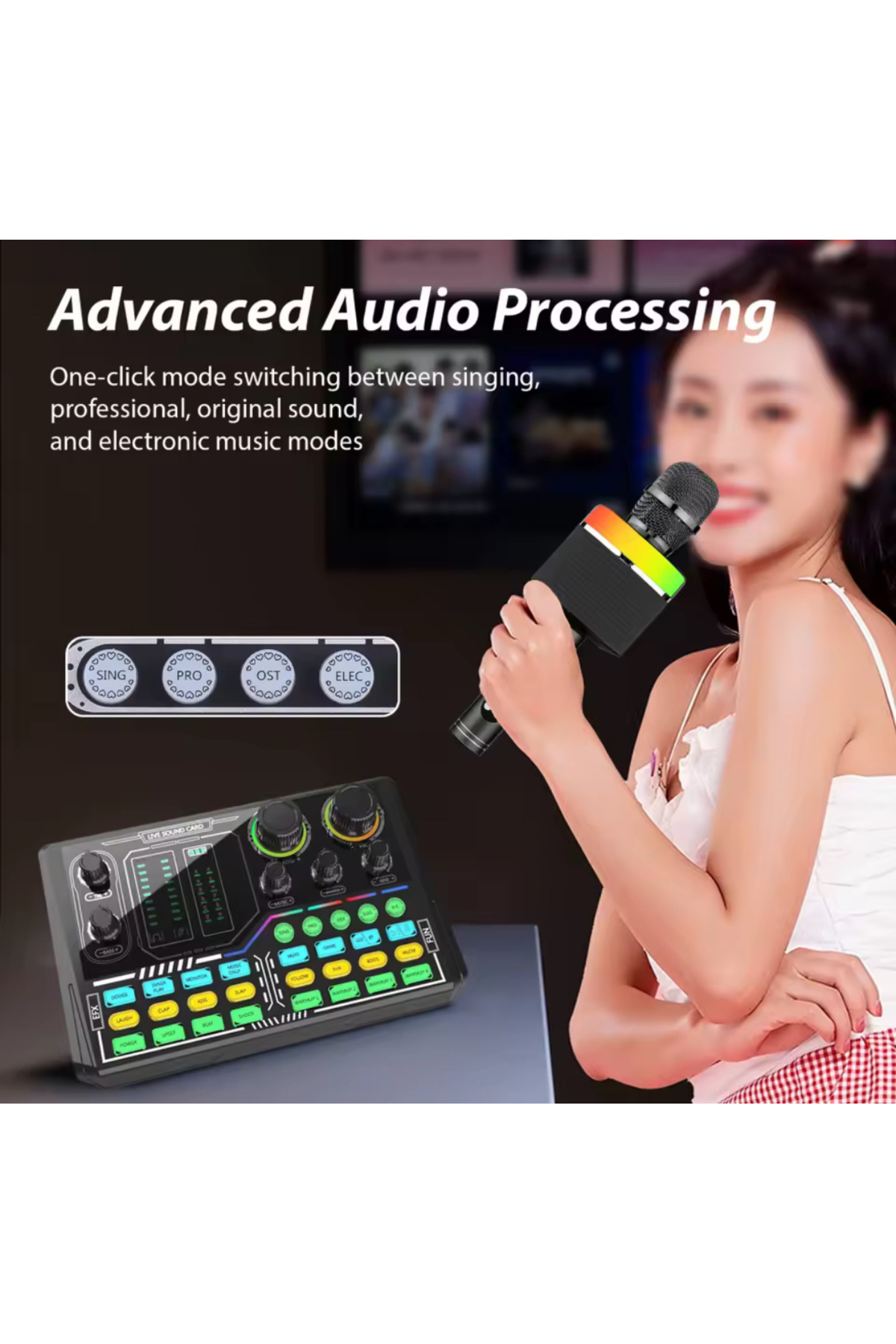 Ses Mikseri Ses Arabirimi RGB Işık BT Kablosuz Eşlik Tak ve Çalıştır Şarj Edilebilir Ses Kartı Ses Mikseri Ses Arabirimi RGB Işık BT Kablosuz Eşlik Tak ve Çalıştır Şarj Edilebilir Ses Kartı yk84 تک سایز