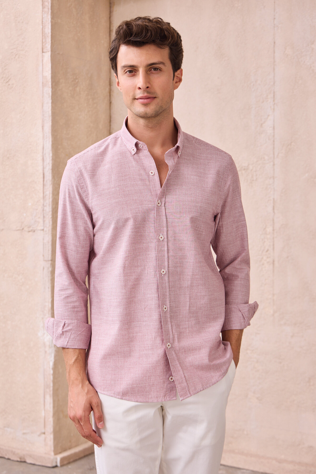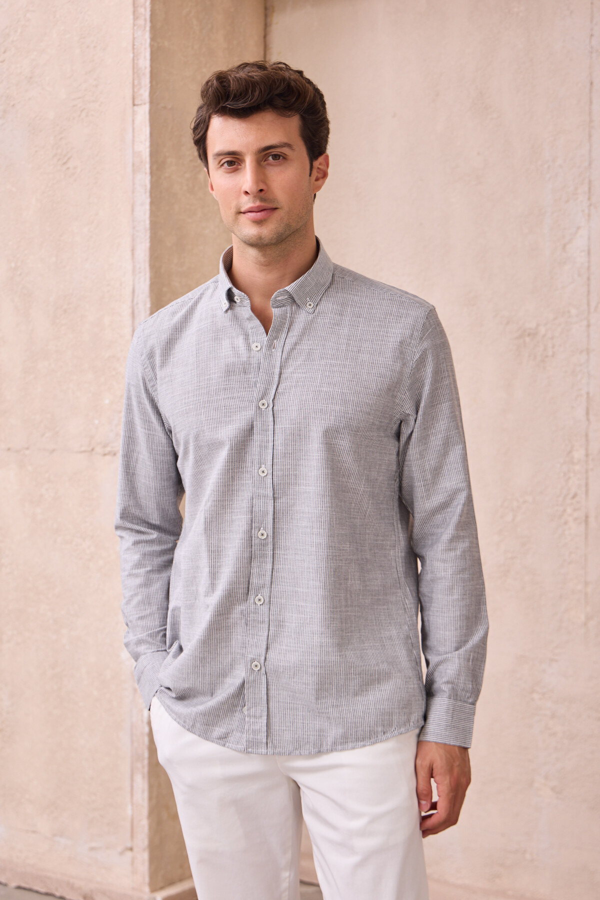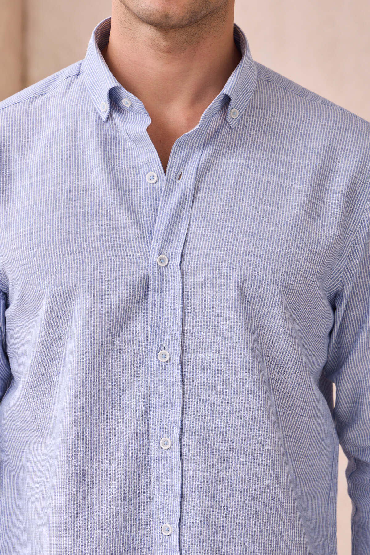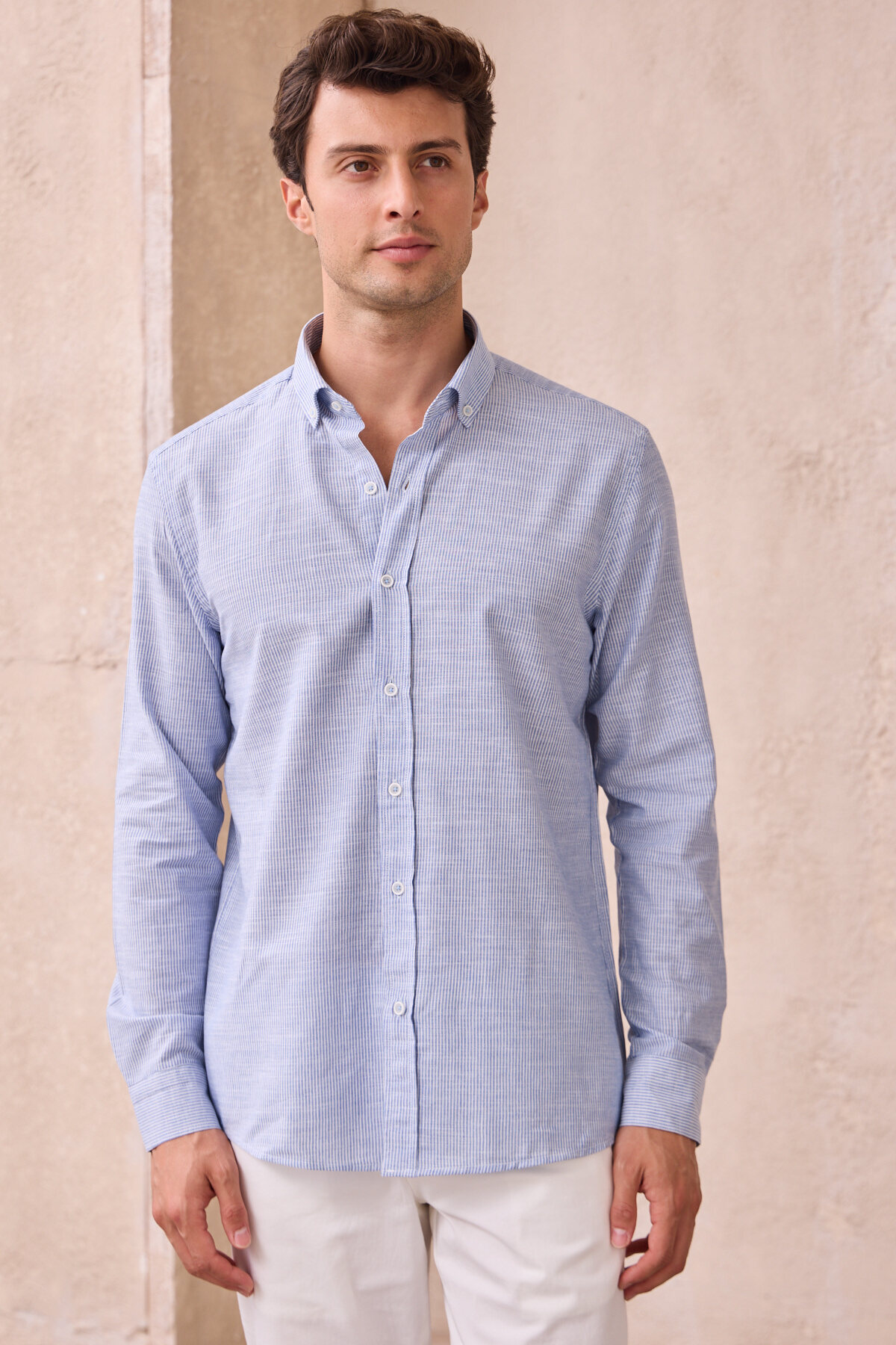 Erkek İnce Çizgili Pamuk Keten Modern Slim Fit Gömlek Erkek İnce Çizgili Pamuk Keten Modern Slim Fit Gömlek iÇ-45674 2XL