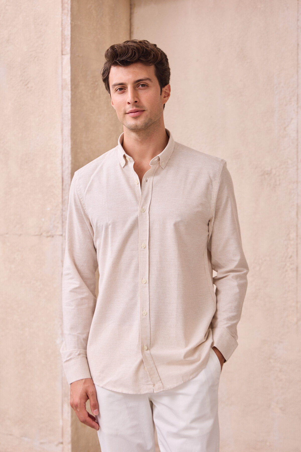 Erkek İnce Çizgili Pamuk Keten Modern Slim Fit Gömlek Erkek İnce Çizgili Pamuk Keten Modern Slim Fit Gömlek iÇ-45674 2XL