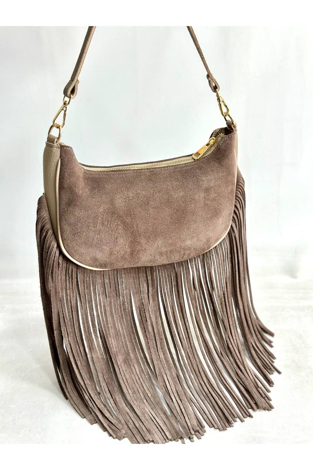 WESTERN hakiki süet deri püskül detaylı kadın omuz çantası WESTERN hakiki süet deri püskül detaylı kadın omuz çantası ckn-westernpüsküllü-cloe تک سایز