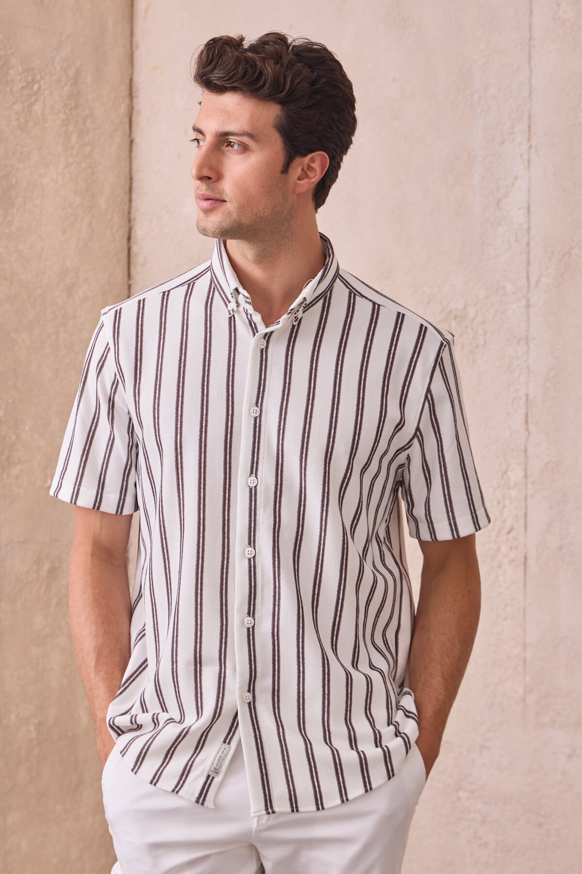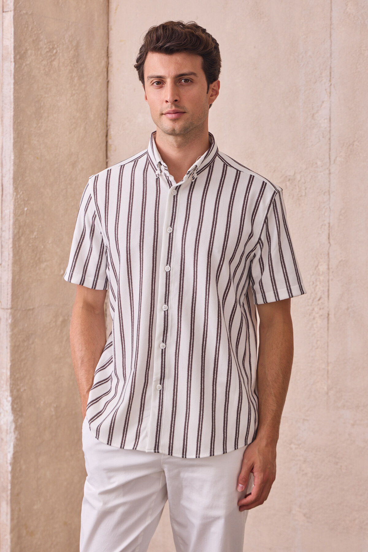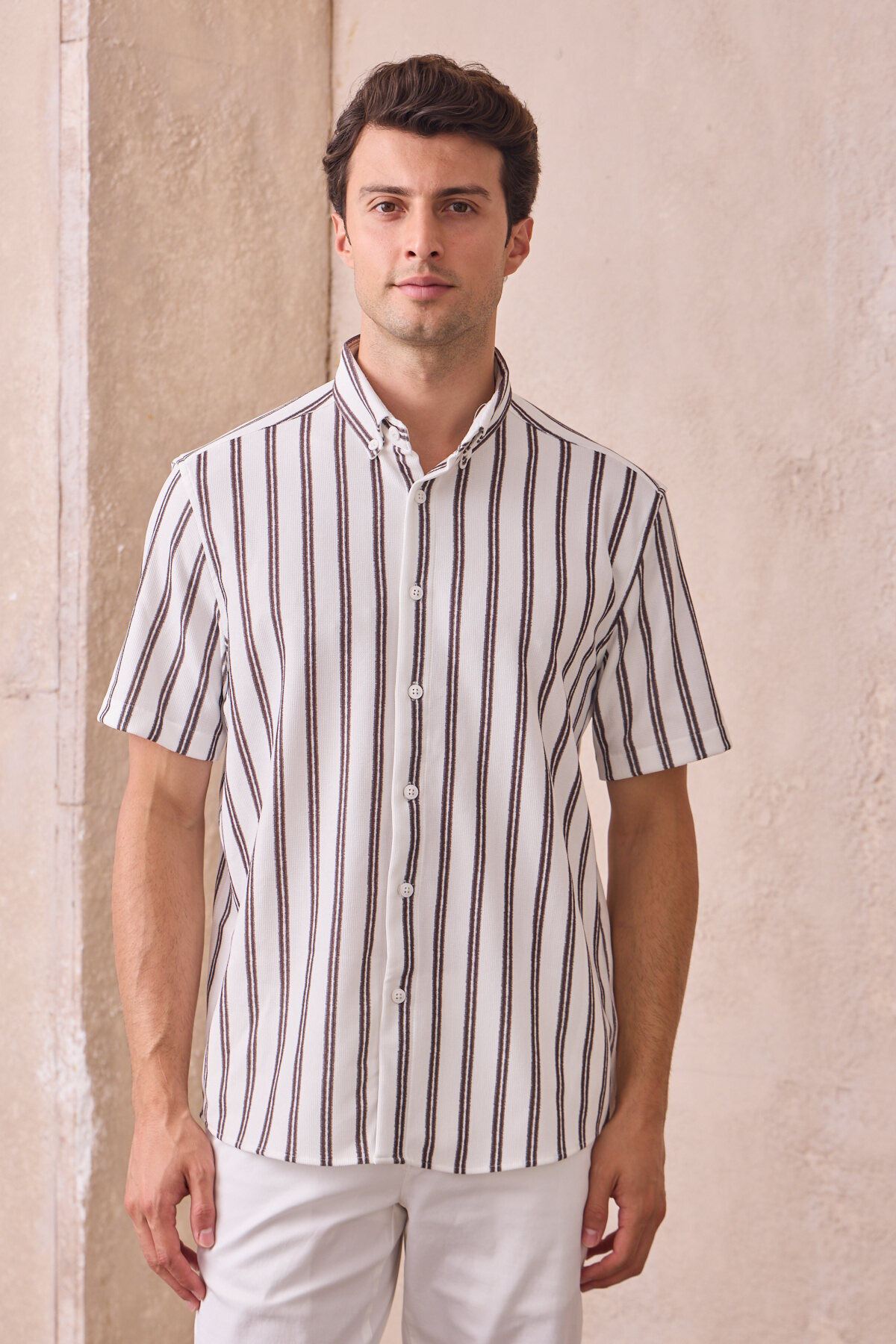 Erkek Slim Fit Dar Kesim Kısa Kollu Nefes Alan Örme Doku Çizgili Yazlık Gömlek Erkek Slim Fit Dar Kesim Kısa Kollu Nefes Alan Örme Doku Çizgili Yazlık Gömlek KO-2626 2XL