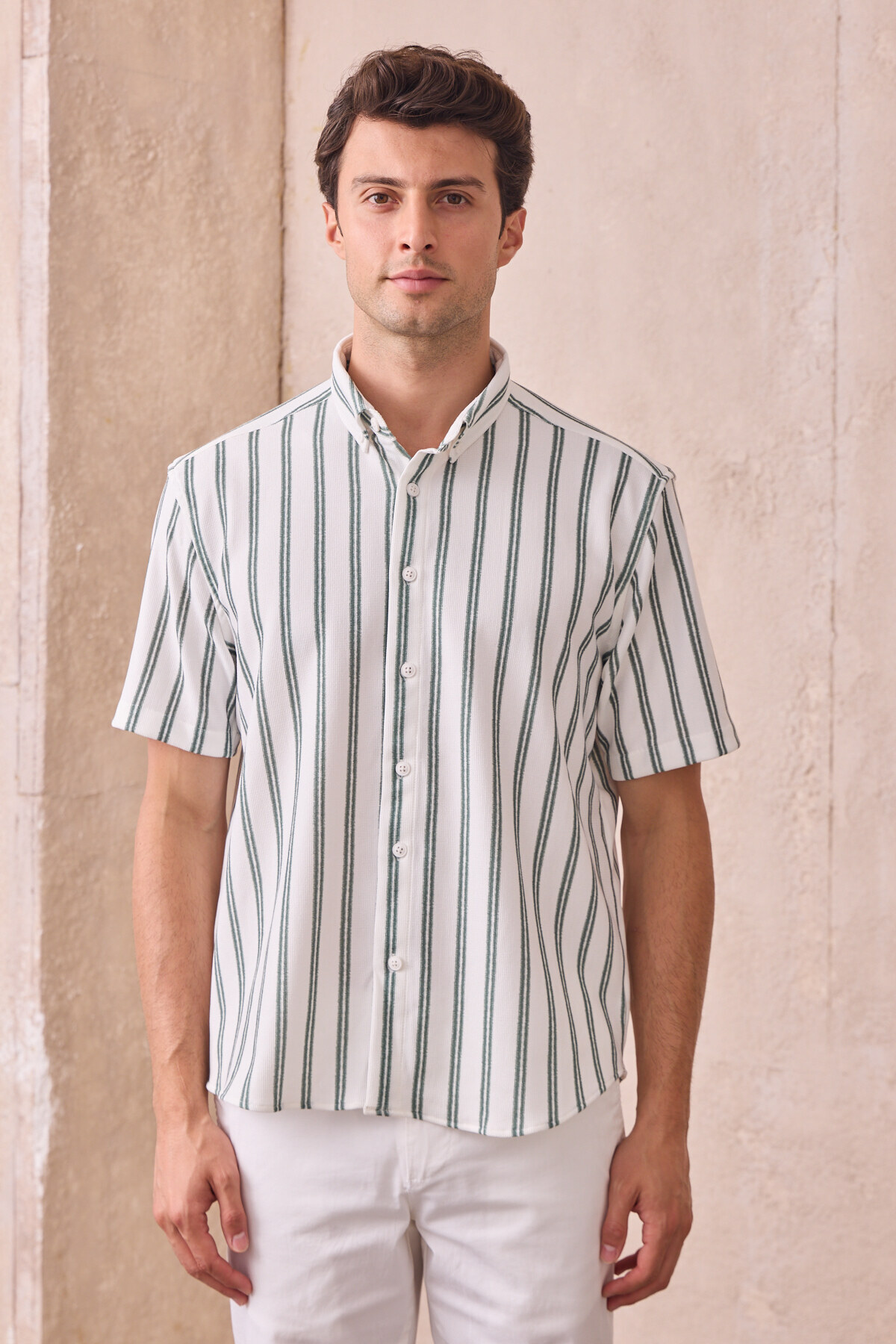 Erkek Slim Fit Dar Kesim Kısa Kollu Nefes Alan Örme Doku Çizgili Yazlık Gömlek Erkek Slim Fit Dar Kesim Kısa Kollu Nefes Alan Örme Doku Çizgili Yazlık Gömlek KO-2626 2XL