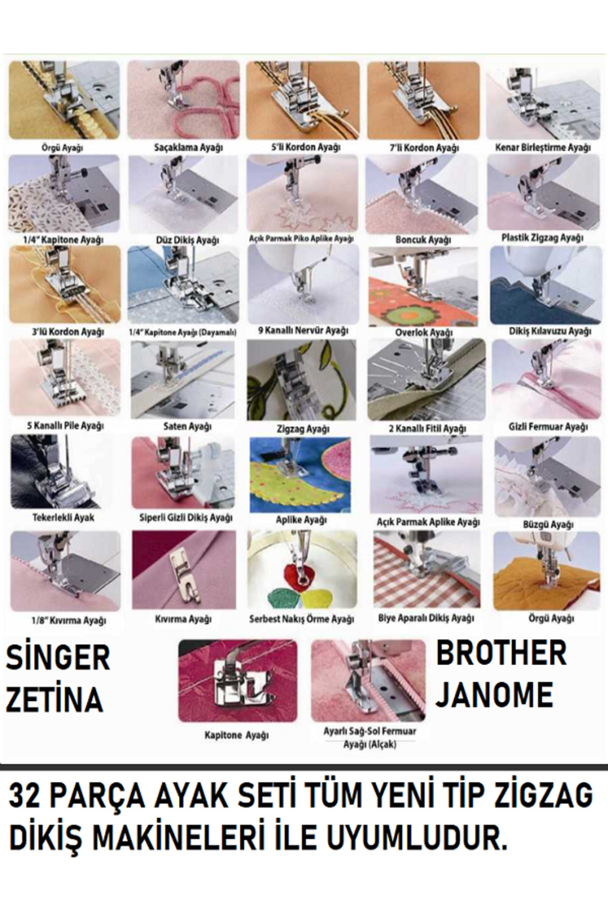SİNGER ZETİNA BROTHER VB. GİBİ TÜM MAKİNELERLE UYUMLU 32 PARÇA YÜKSEK KALİTE AYAK SETİ (1 KUTU) SİNGER ZETİNA BROTHER VB. GİBİ TÜM MAKİNELERLE UYUMLU 32 PARÇA YÜKSEK KALİTE AYAK SETİ (1 KUTU) SWRJ2321 تک سایز
