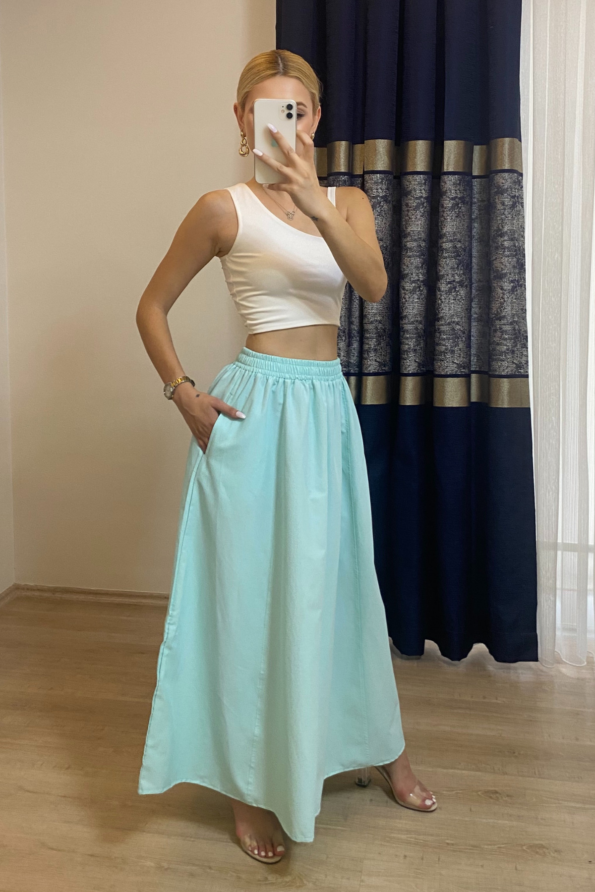 CEPLİ BELİ LASTİKLİ UZUN POPLİN ETEK CEPLİ BELİ LASTİKLİ UZUN POPLİN ETEK MDDSSST Standart