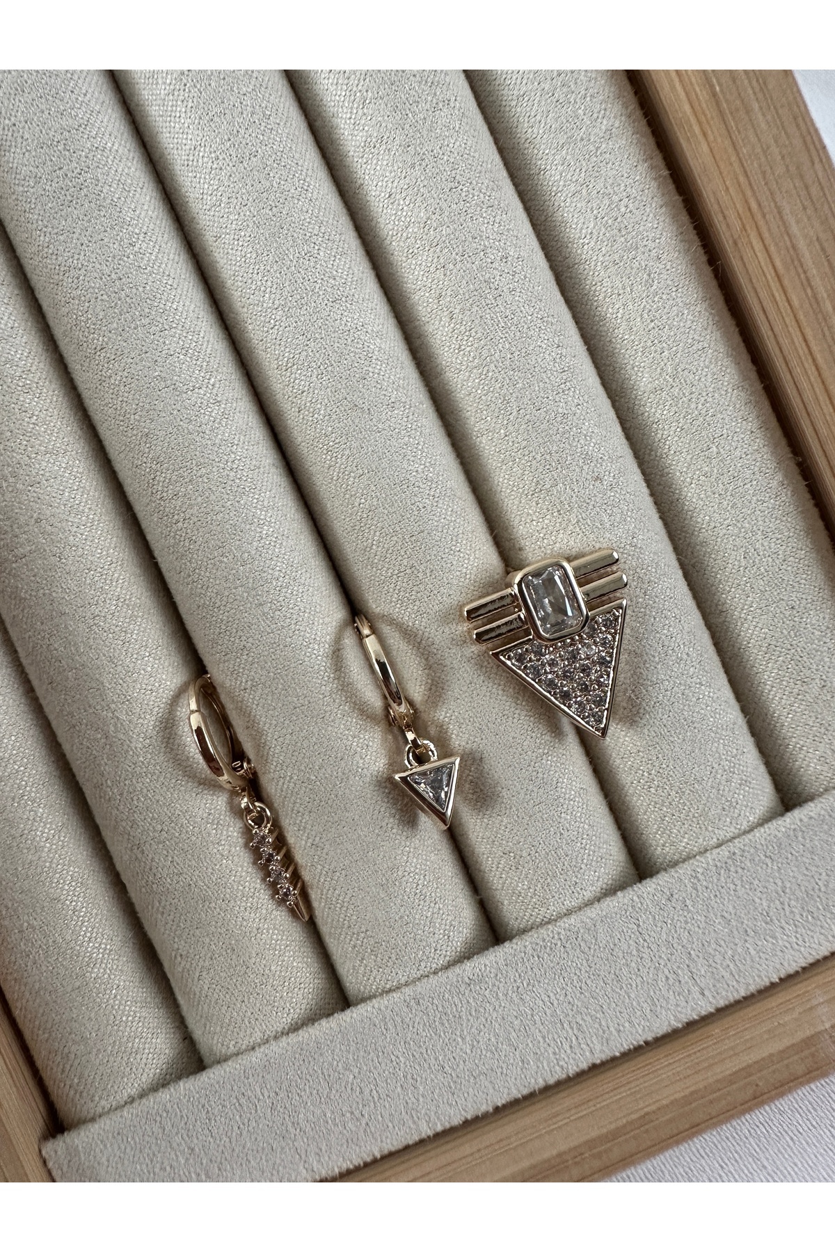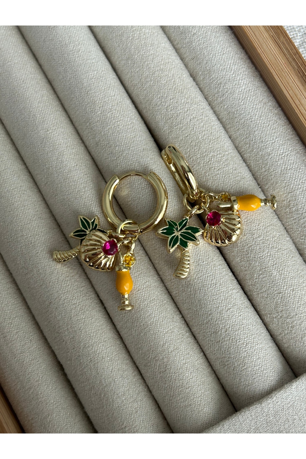 Palmiye ve İstiridye Detaylı Sallantılı Gold Küpe Palmiye ve İstiridye Detaylı Sallantılı Gold Küpe RBK338 تک سایز