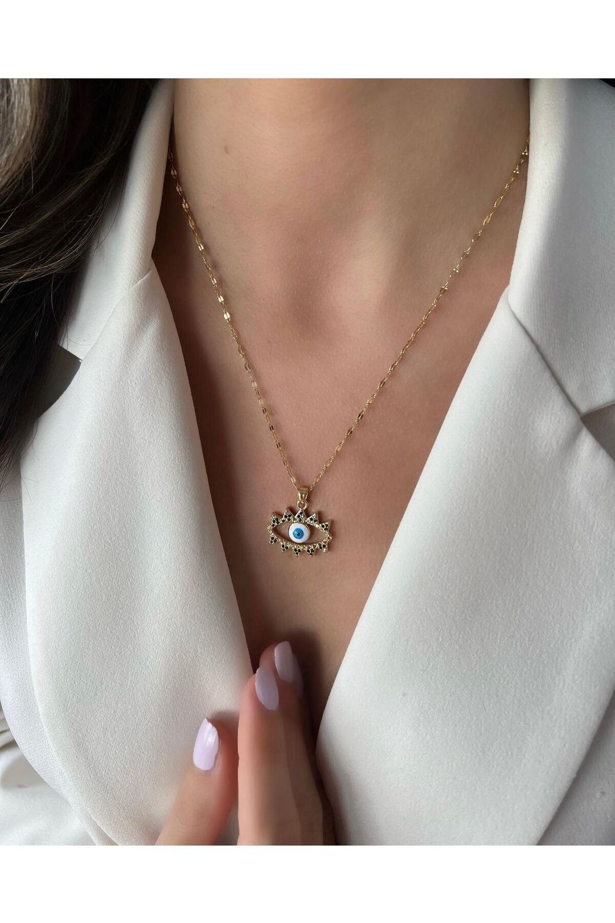 Taşlı Yeşil Göz Tasarım 925K Gümüş Kolye Taşlı Yeşil Göz Tasarım 925K Gümüş Kolye PETITE053 45 cm