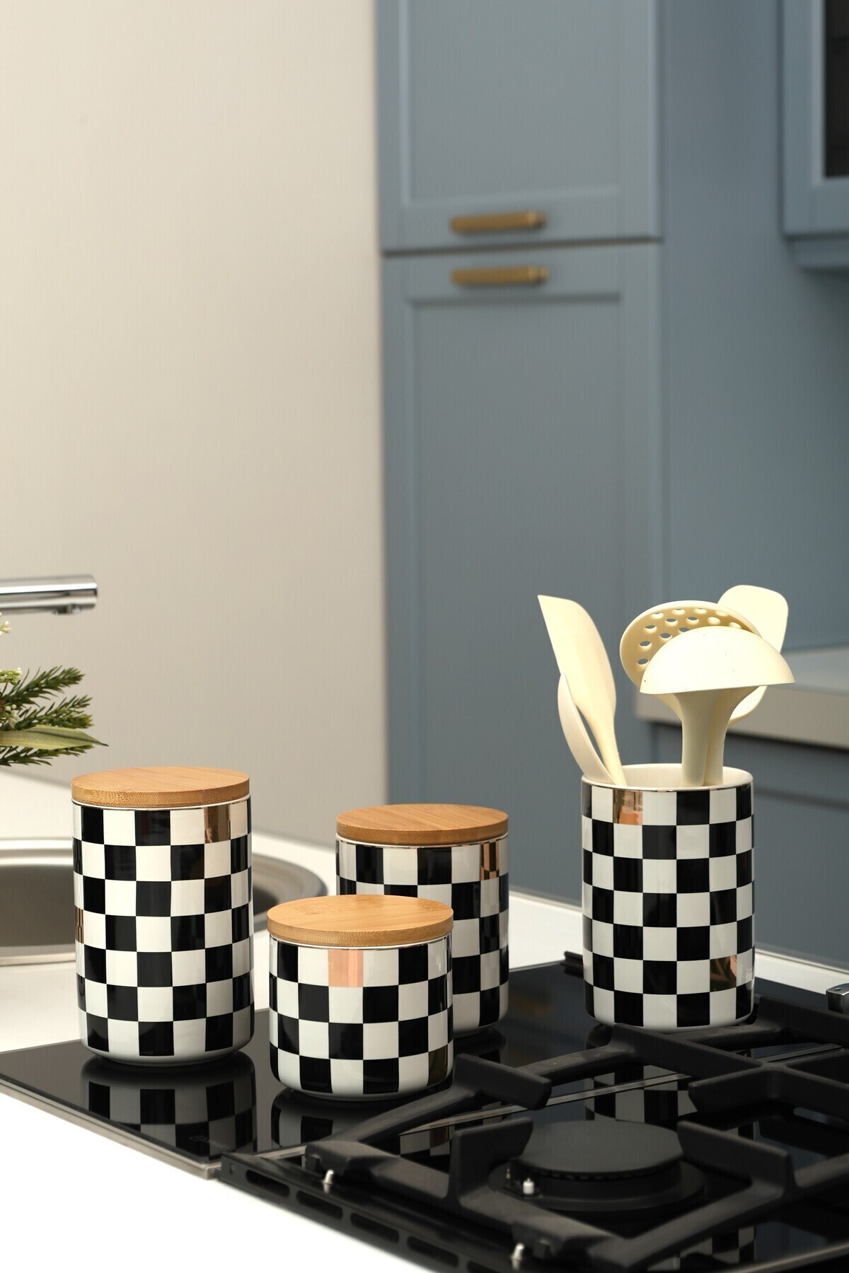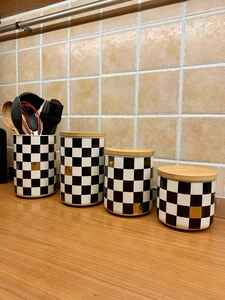 4'lü Seramik Set Dama Desenli Altın Yaldızlı Damalı Şekerlik Çay Kahve Saklama Kabı Baharatlık 4'lü Seramik Set Dama Desenli Altın Yaldızlı Damalı Şekerlik Çay Kahve Saklama Kabı Baharatlık Dama01-4lüTakım.Seramik تک سایز