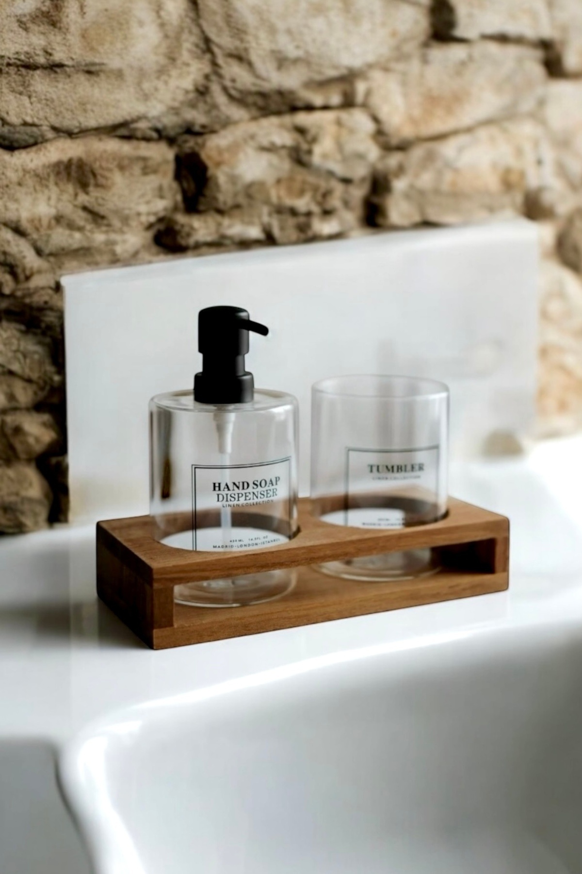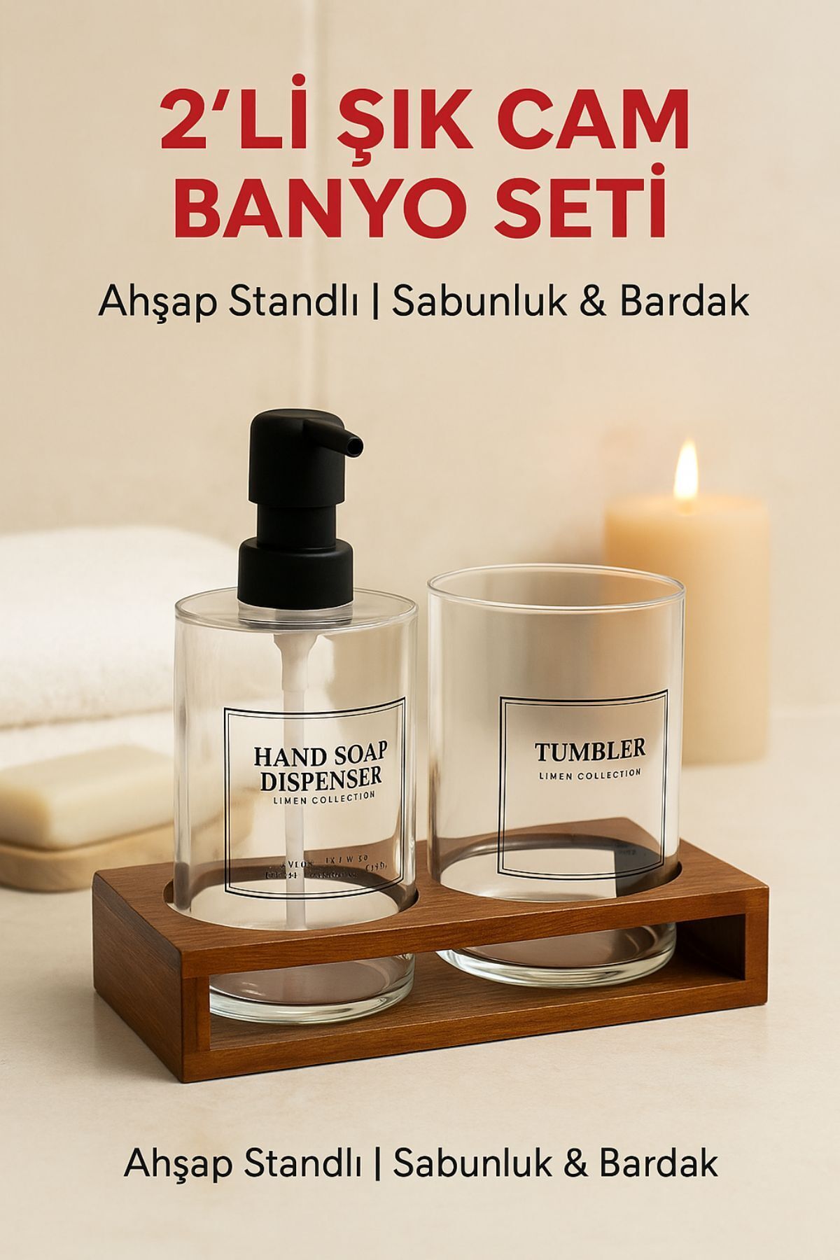 Akasya Stantlı Tumbler Cam Sabunluk ve Diş Fırçalık Seti, Banyo Sıvı Sabunluk 430ml Akasya Stantlı Tumbler Cam Sabunluk ve Diş Fırçalık Seti, Banyo Sıvı Sabunluk 430ml EKG-8204 تک سایز