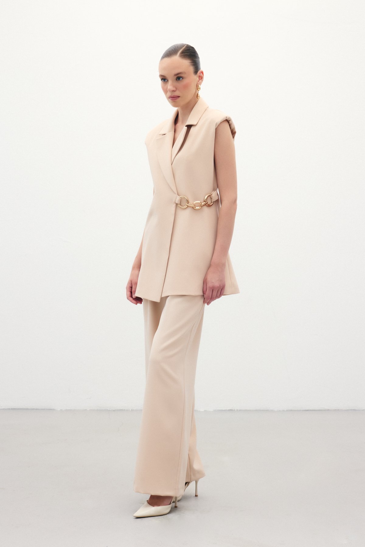 Yan Aksesuarlı Uzun Yelek - Bej Yan Aksesuarlı Uzun Yelek - Bej STN139KYE1665 42
