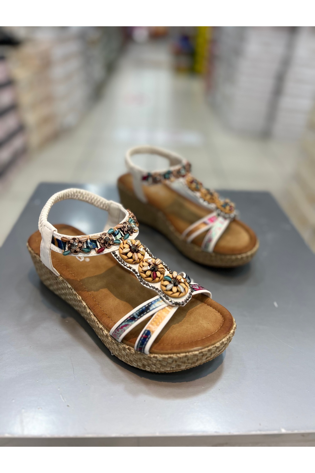 25y171 Kadın Beyaz Platform Kalın Dolgu Taban Ortopedik Çiçekli Taşlı Yazlık Günlük Spor Sandalet 25y171 Kadın Beyaz Platform Kalın Dolgu Taban Ortopedik Çiçekli Taşlı Yazlık Günlük Spor Sandalet 1711 41