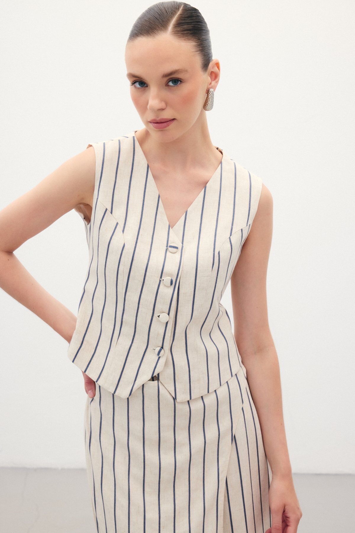 Çizgili Keten Karışımlı Yelek - Lacivert Çizgili Keten Karışımlı Yelek - Lacivert STN139KYE1861 40