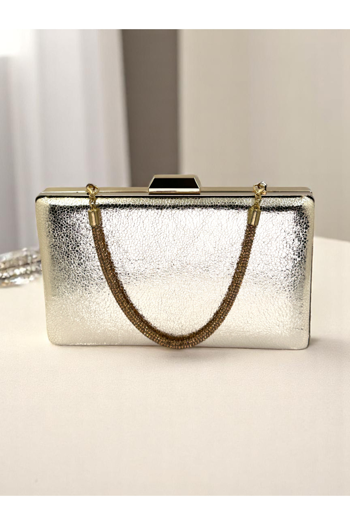 Yeni Model Altın Renk Parlak Desenli Zincir Askılı Saplı Kadın Abiye Çanta Düğün Nişan Mezuniyet Yeni Model Altın Renk Parlak Desenli Zincir Askılı Saplı Kadın Abiye Çanta Düğün Nişan Mezuniyet WF 135 SLM YILAN تک سایز