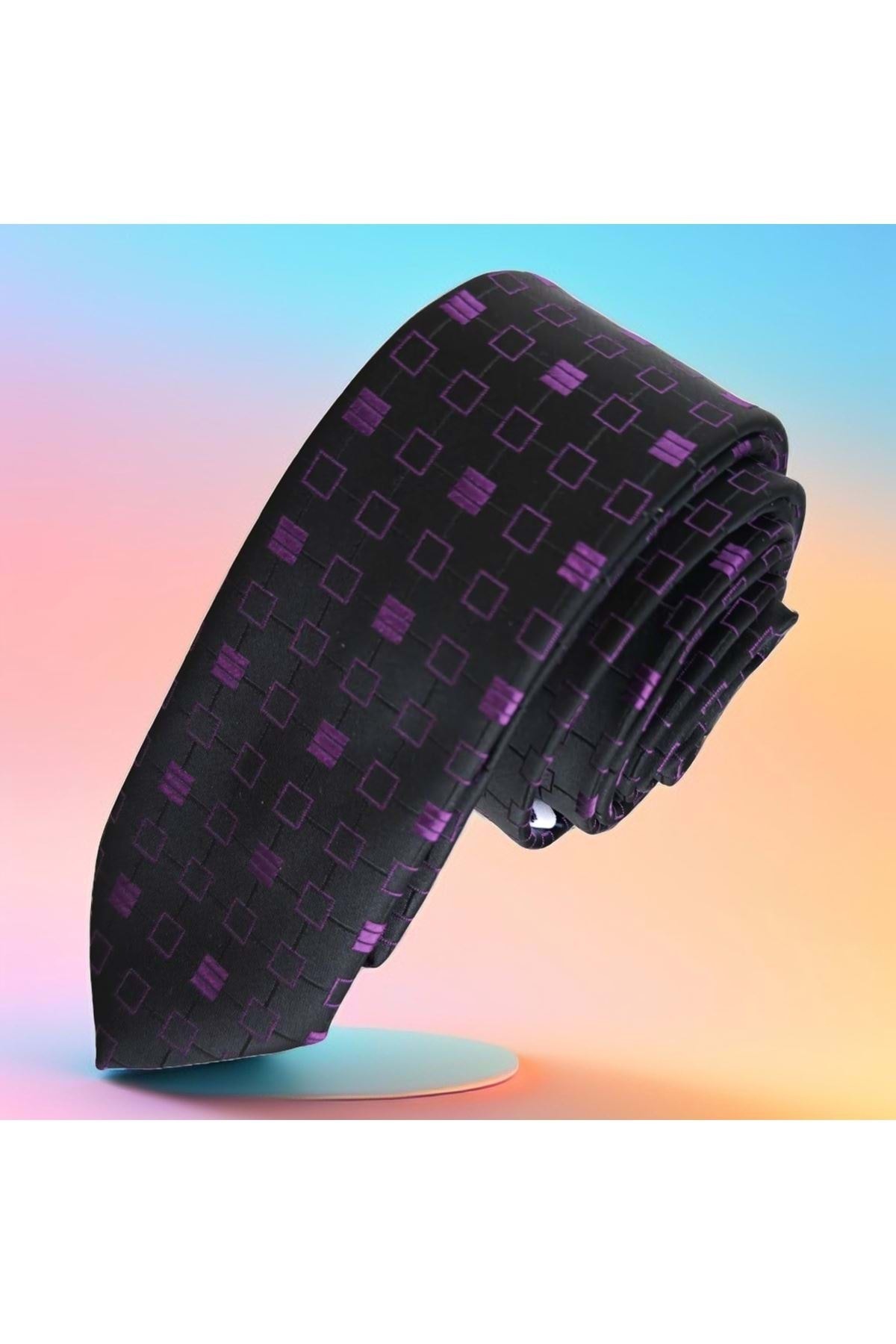 Mor Şal Desenli Siyah İnce Moda Slim Kravat Mor Şal Desenli Siyah İnce Moda Slim Kravat AD4340 تک سایز