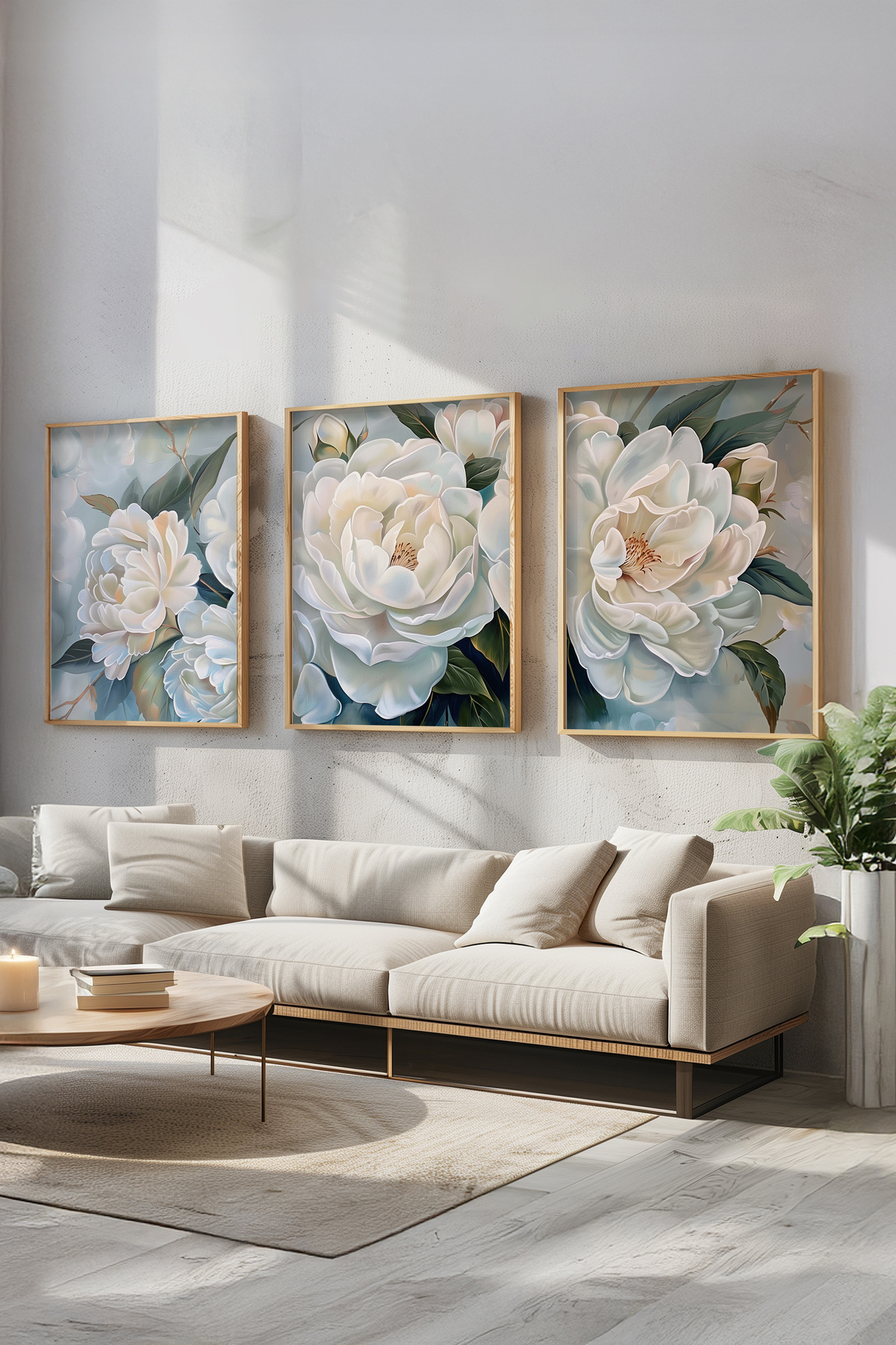 Yağlı boya efektli beyaz güllü tablo, ahşap çerçeveli 3'lü tablo seti Yuna155 Yağlı boya efektli beyaz güllü tablo, ahşap çerçeveli 3'lü tablo seti Yuna155 yuna155 50 x 70