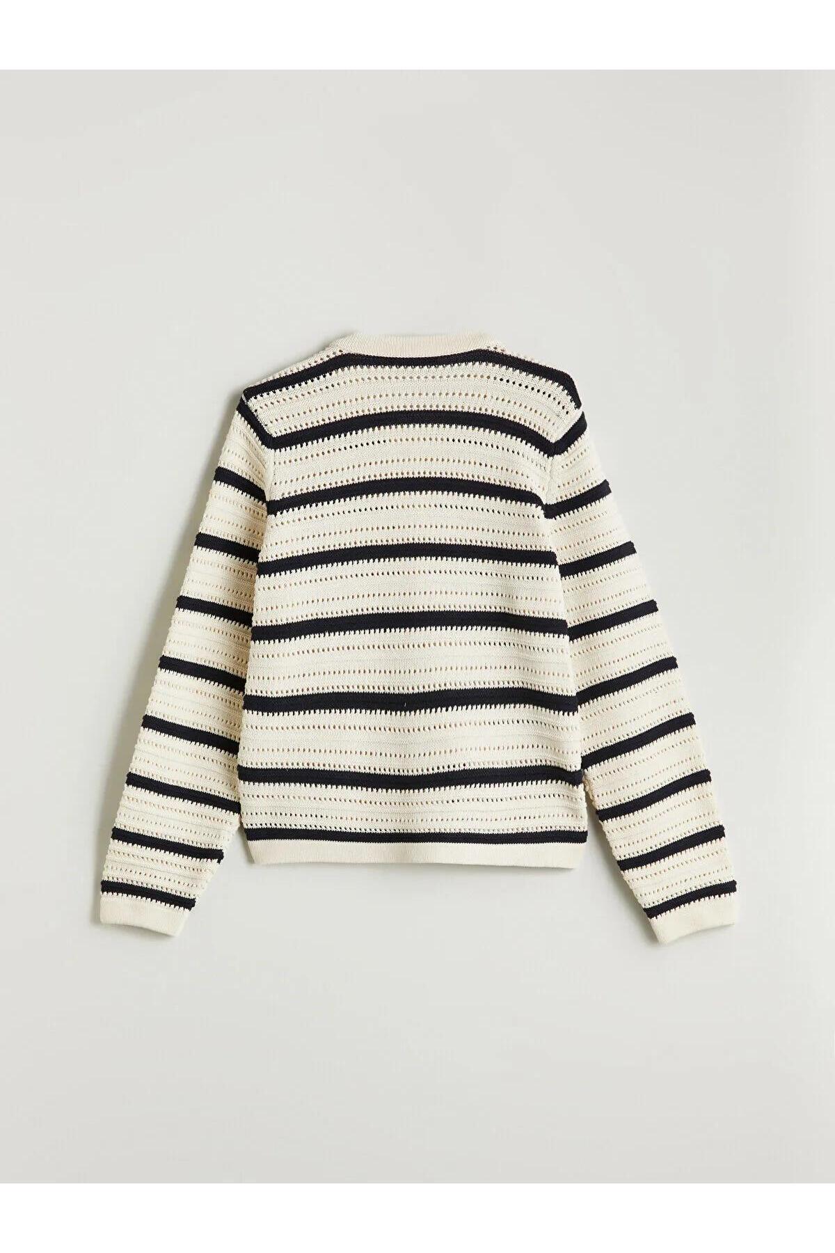 LCW Modest Bisiklet Yaka Çizgili Kadın Triko Hırka (W5) LCW Modest Bisiklet Yaka Çizgili Kadın Triko Hırka (W5) W5GF41Z8 2XL
