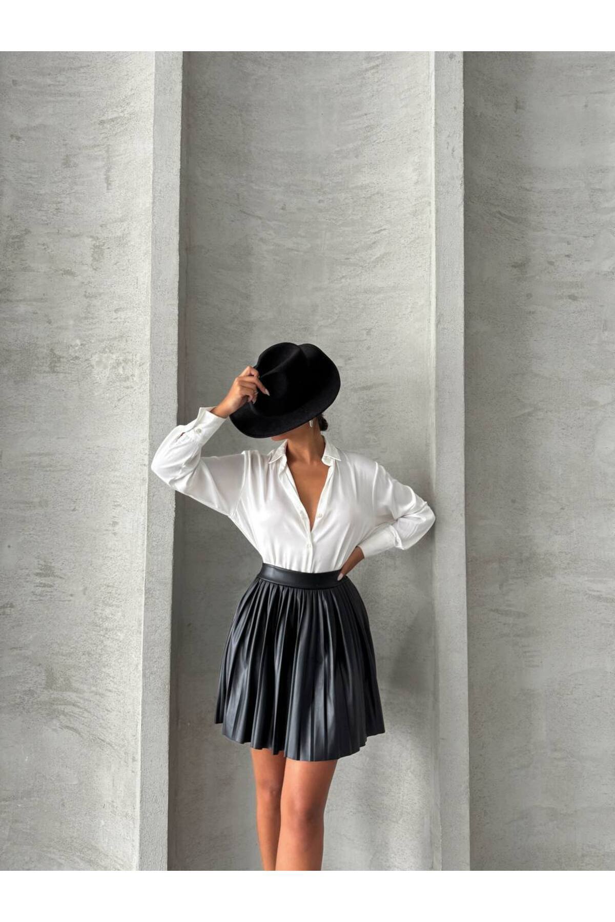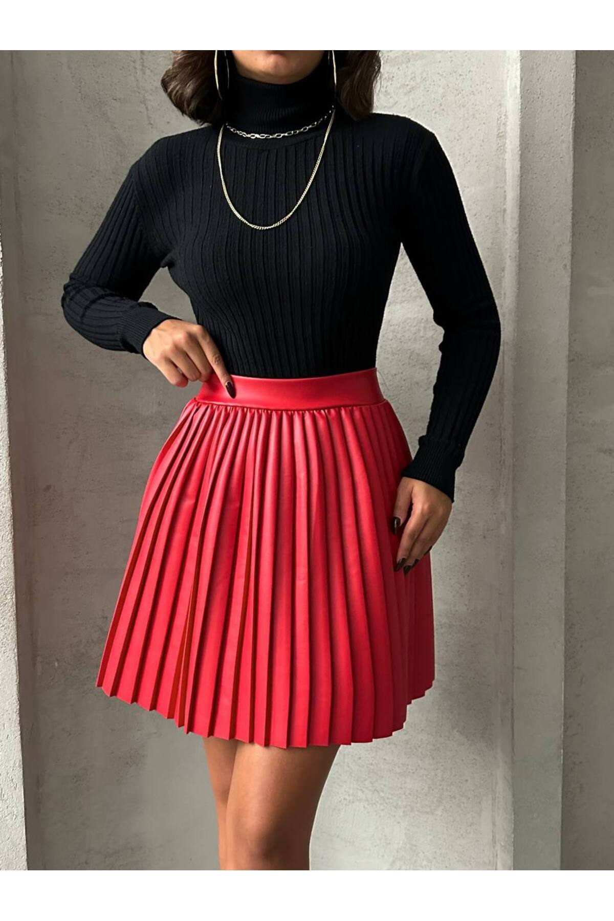 Siyah Yüksek Bel Suni Deri Piliseli Etek Siyah Yüksek Bel Suni Deri Piliseli Etek BPH241564 XL