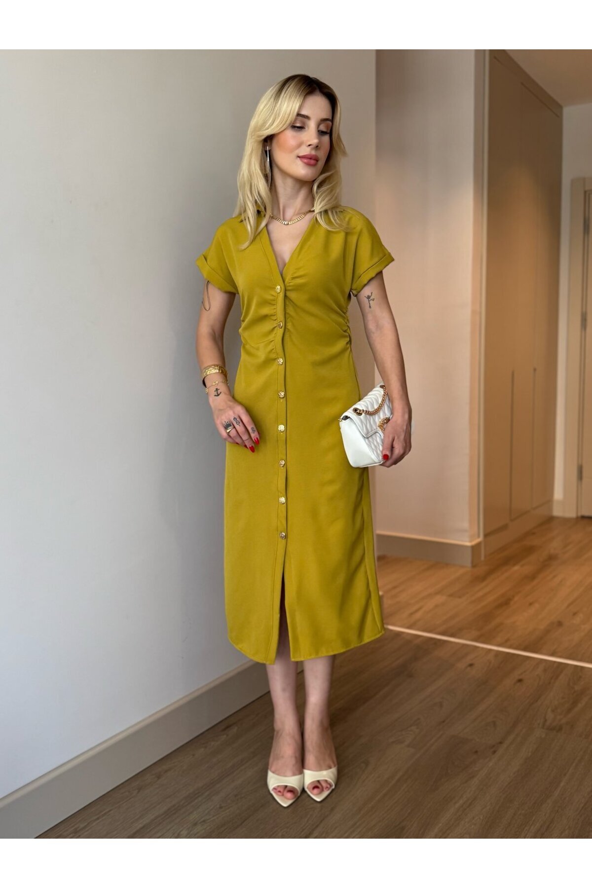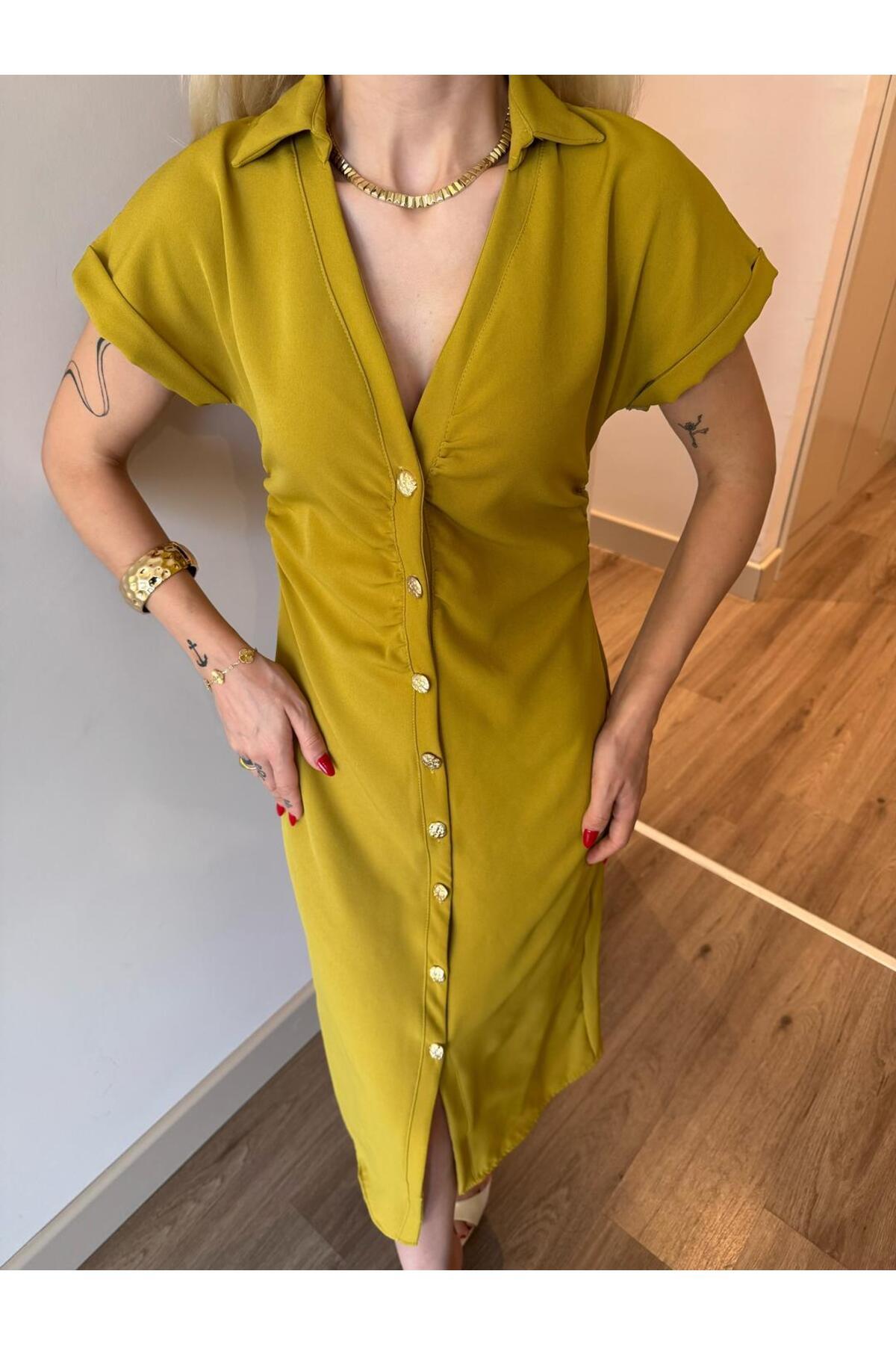 Gold Düğme Büzgü Detaylı Elbise Gold Düğme Büzgü Detaylı Elbise YK-R4812 40