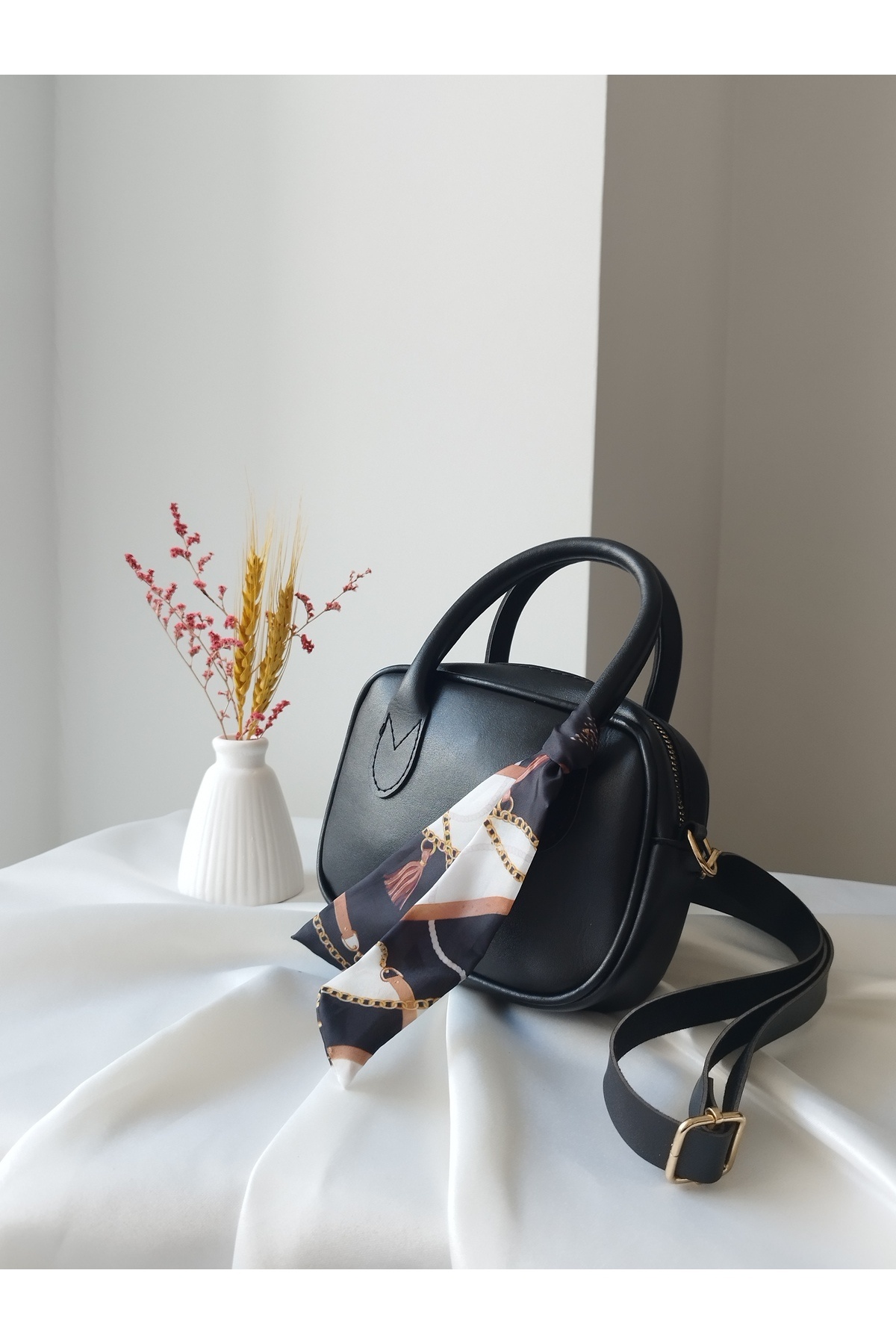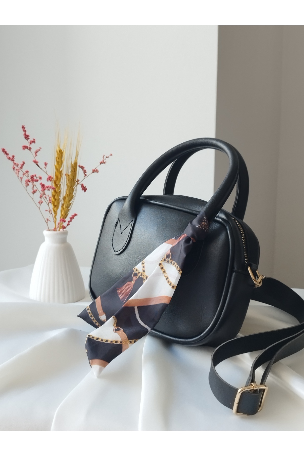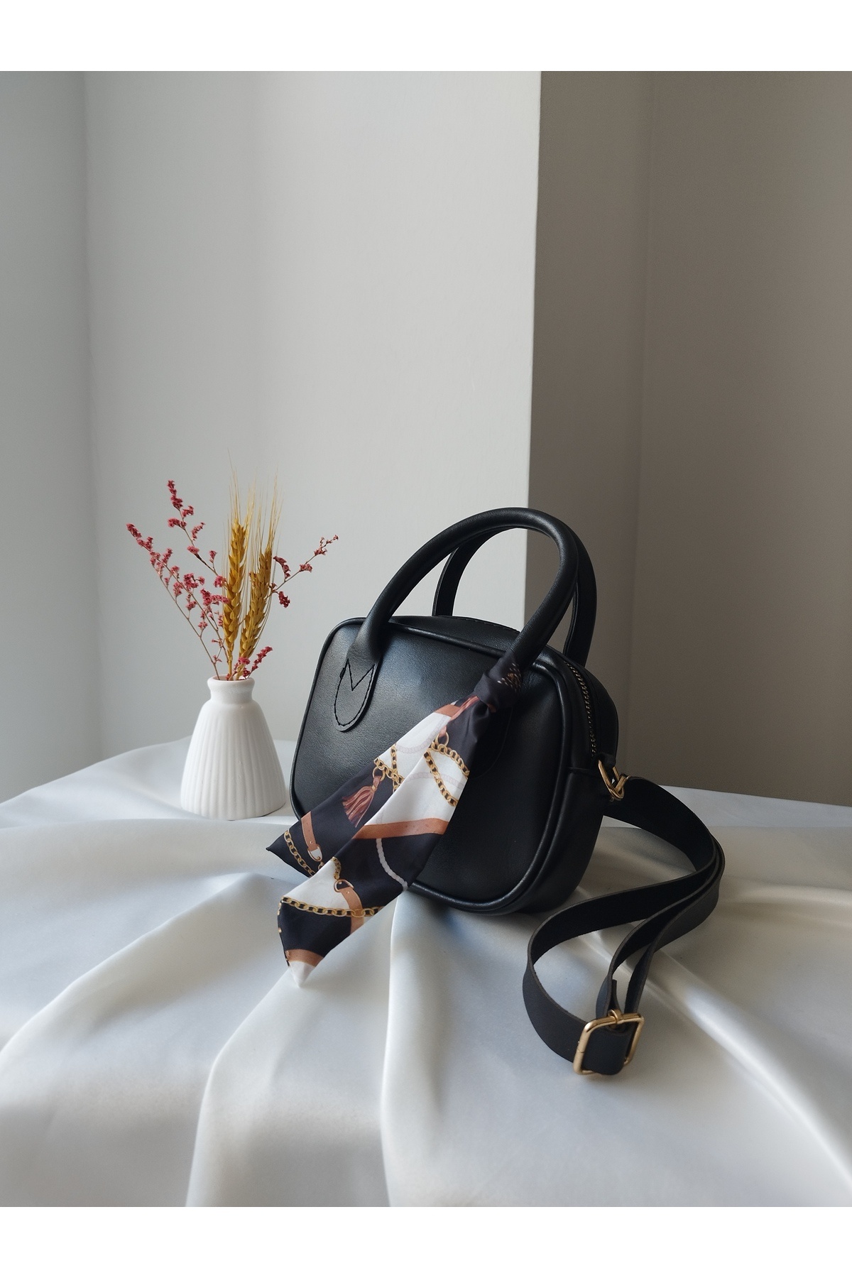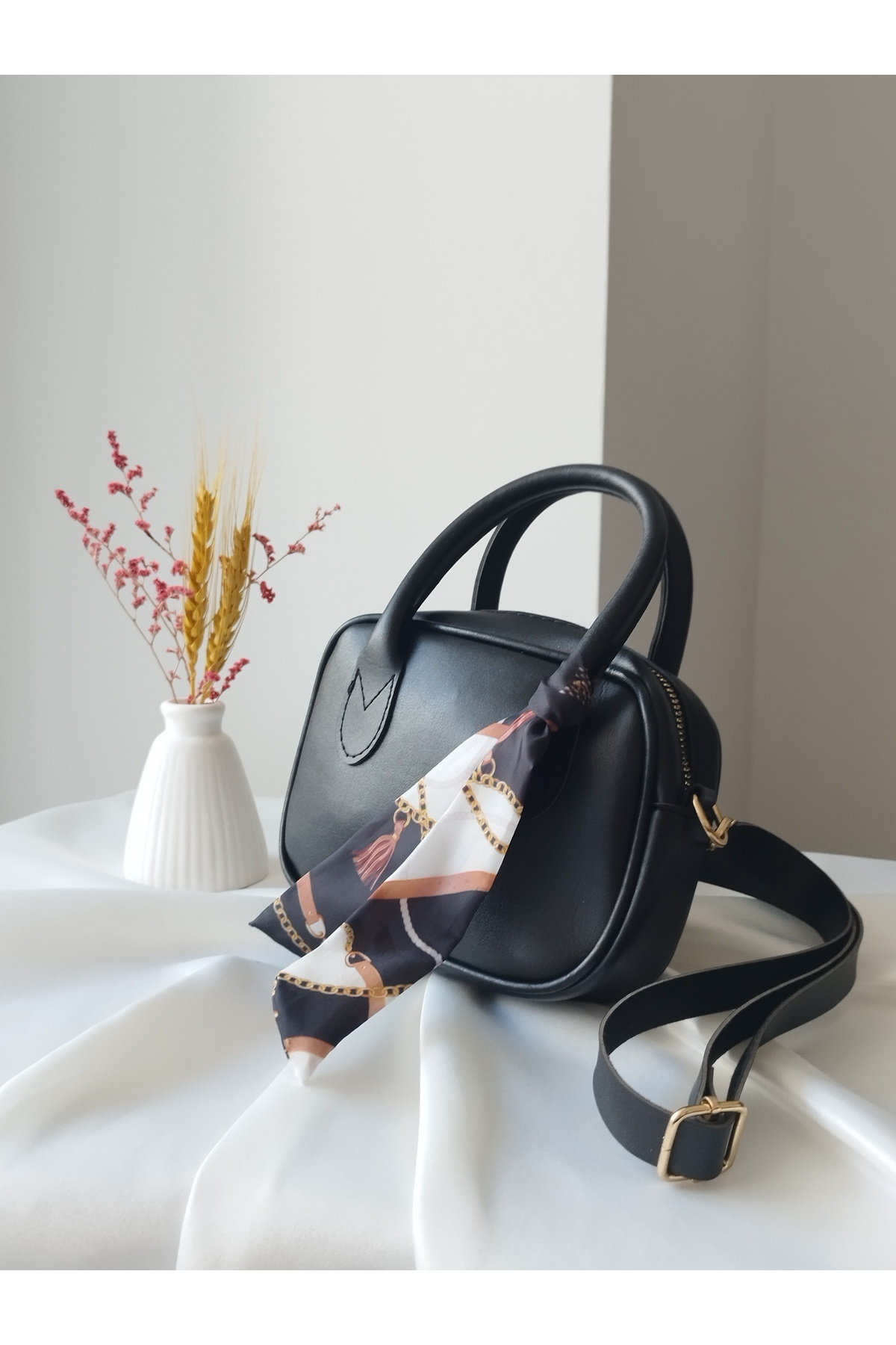 Fular Detaylı Siyah Deri Mini Trend Kadın El ve Omuz Çantası – Zarafet Hep Seninle Fular Detaylı Siyah Deri Mini Trend Kadın El ve Omuz Çantası – Zarafet Hep Seninle ÇAN0042 Standart