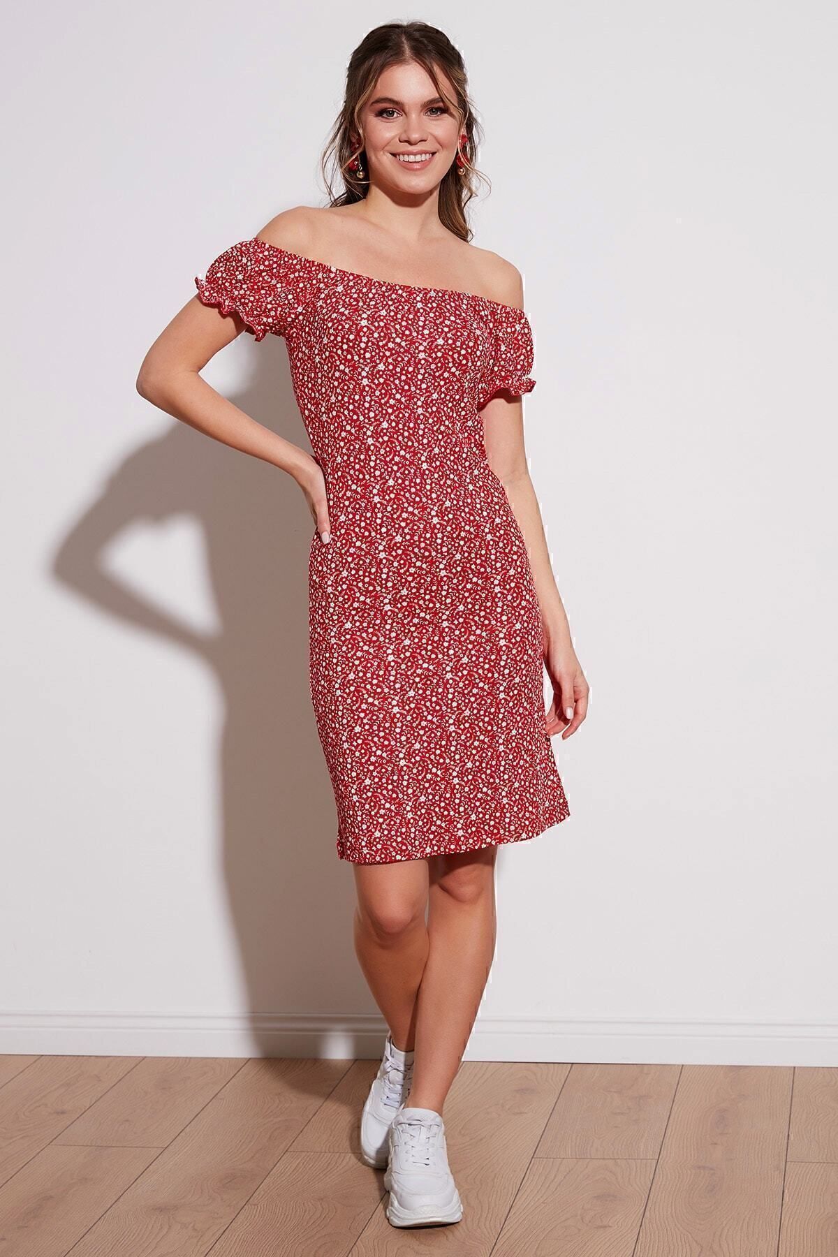 eyesof Kadın Kısa Kollu Kruvaze Yakalı çiçek Desenli Süprem Elbise eyesof Kadın Kısa Kollu Kruvaze Yakalı çiçek Desenli Süprem Elbise mtn-170314 2XL-3XL