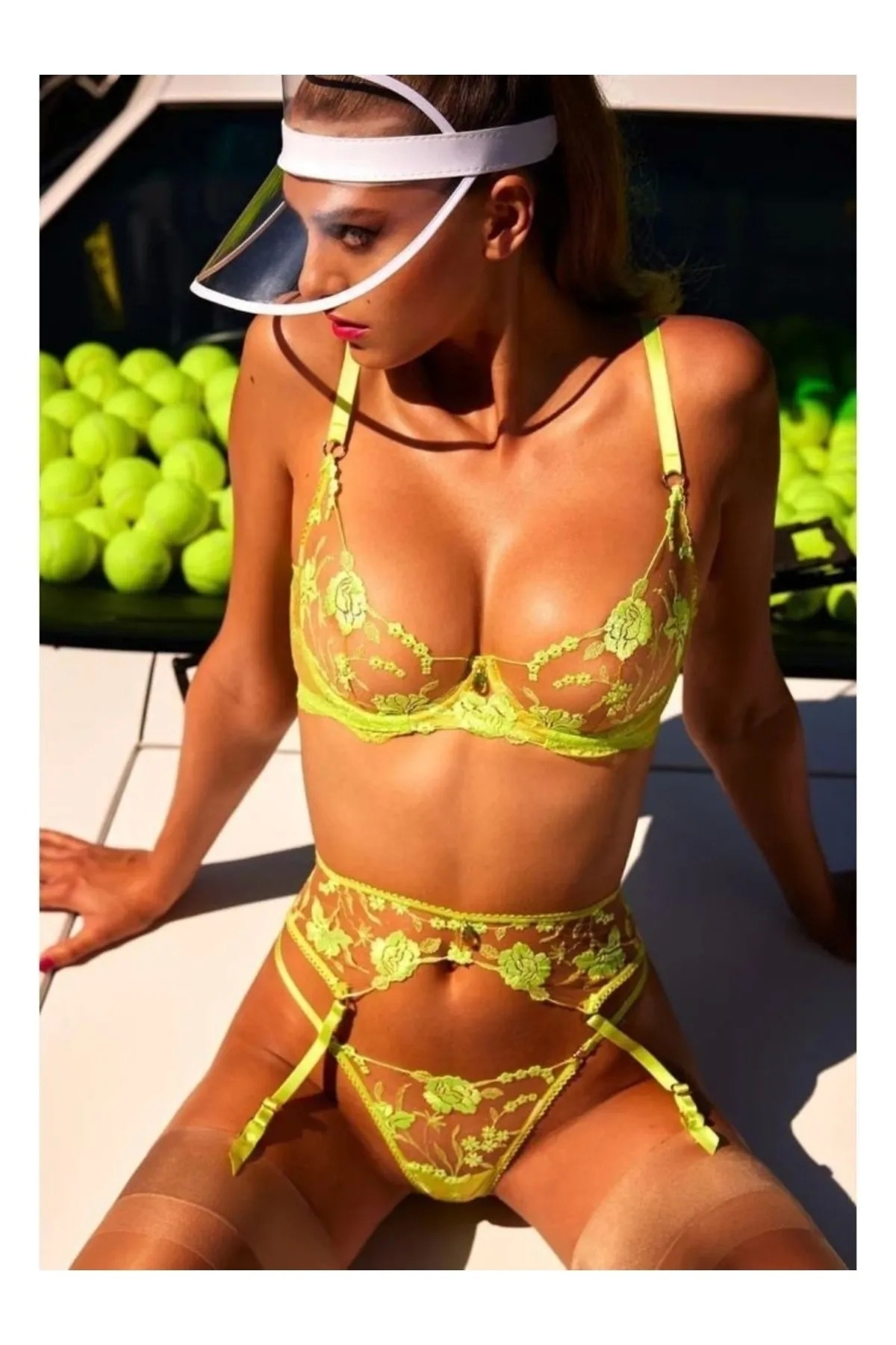 Sarı Transparan Dantel İşlemeli Tül Yırtmaçlı 2'li Gecelik Takımı Sarı Transparan Dantel İşlemeli Tül Yırtmaçlı 2'li Gecelik Takımı P56841S6310 XL