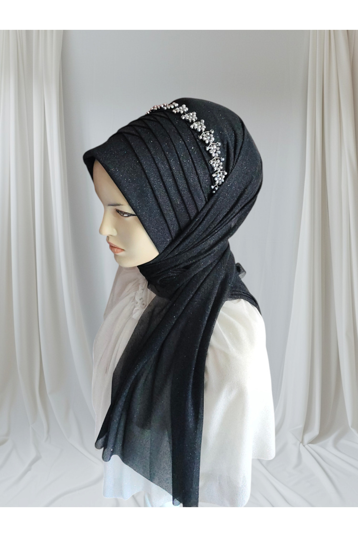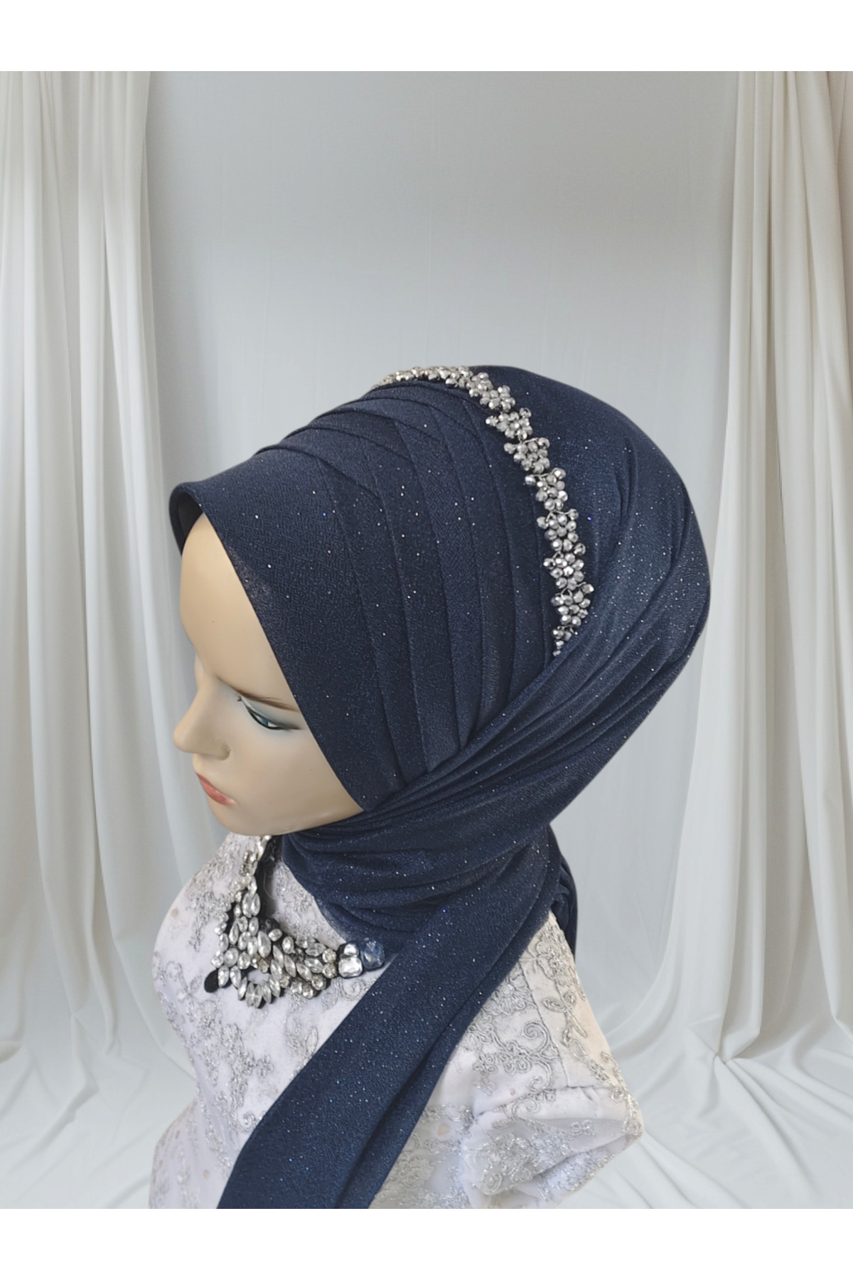 Lacivert işlemeli model hazır duvak hazır şal hazır türban Lacivert işlemeli model hazır duvak hazır şal hazır türban 4lugecis 70 x 42
