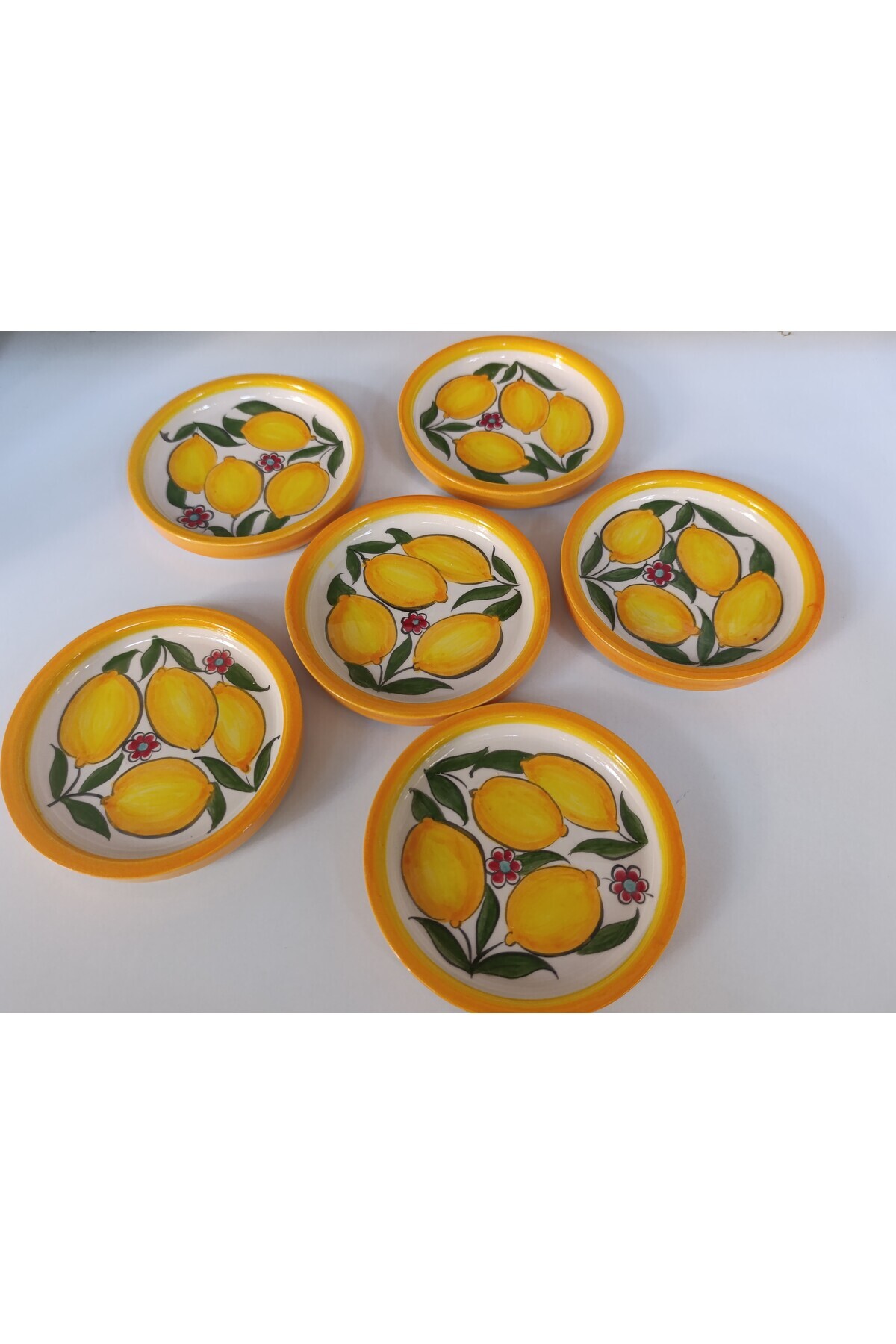 El yapımı limon desenli 6'li 12 cm dikkenar çerezlik sunumluk seramik kahvaltı tabağı El yapımı limon desenli 6'li 12 cm dikkenar çerezlik sunumluk seramik kahvaltı tabağı od-x026 تک سایز