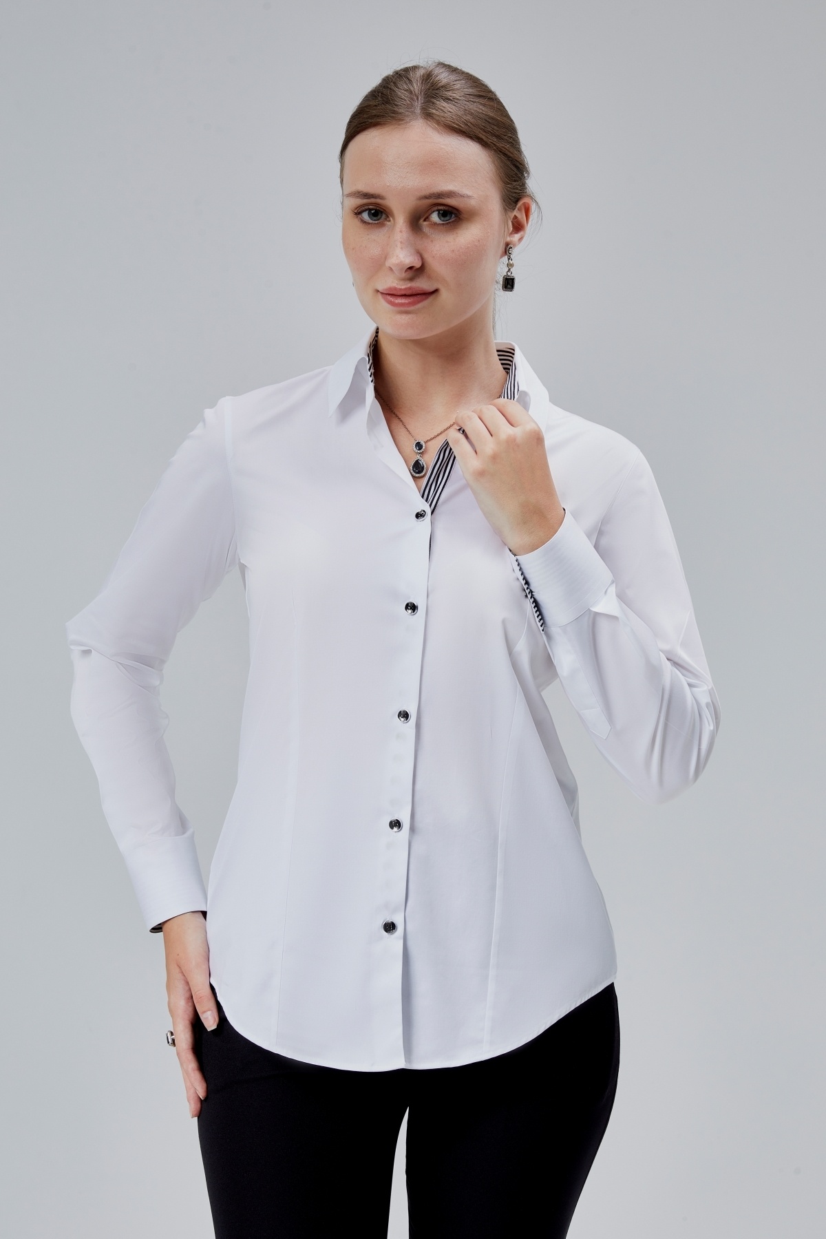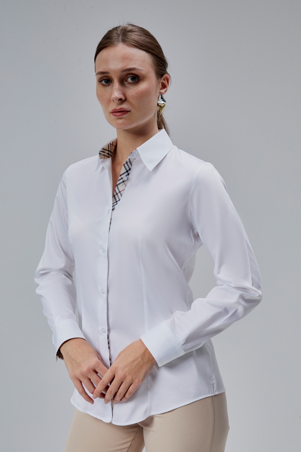 Beyaz Pamuk Saten Likralı Burbery Kumaş Detaylı Slim Fit Kadın Gömlek Beyaz Pamuk Saten Likralı Burbery Kumaş Detaylı Slim Fit Kadın Gömlek FRQN-YENİ-007 46