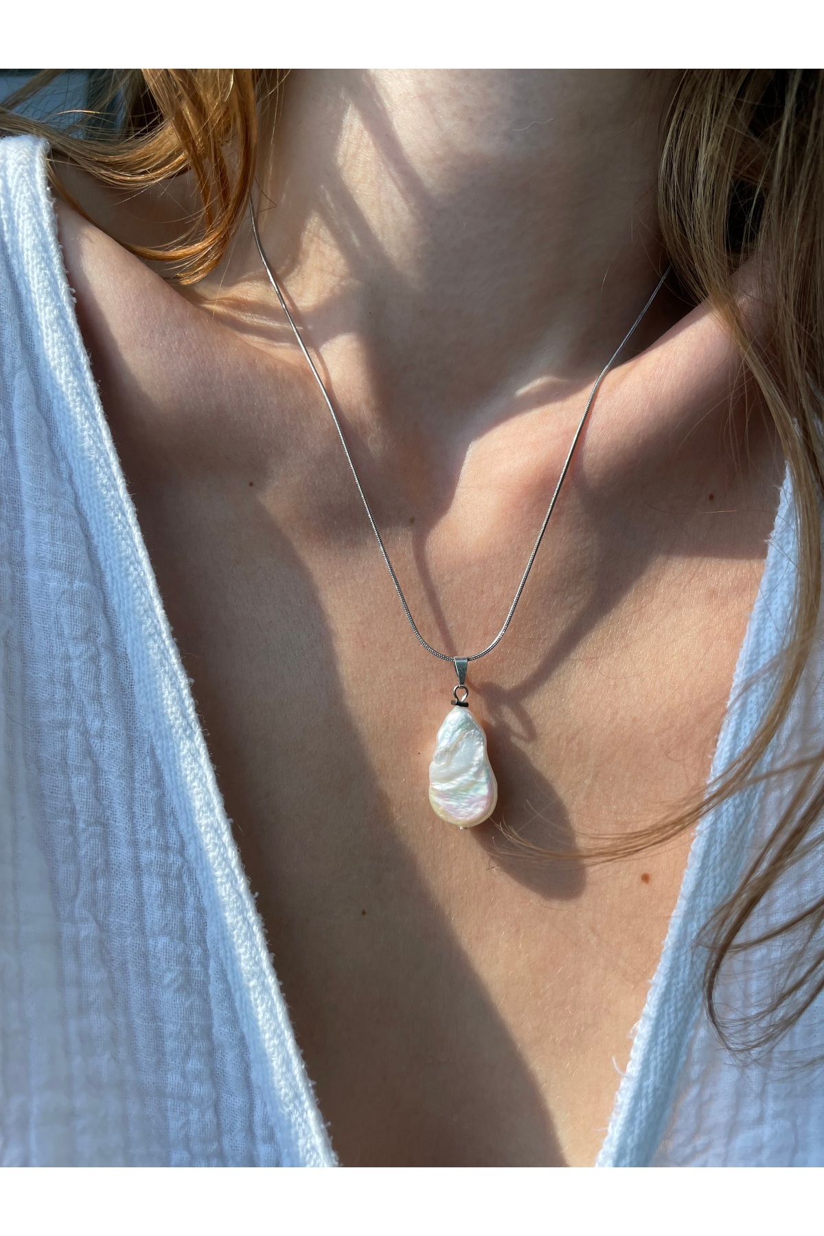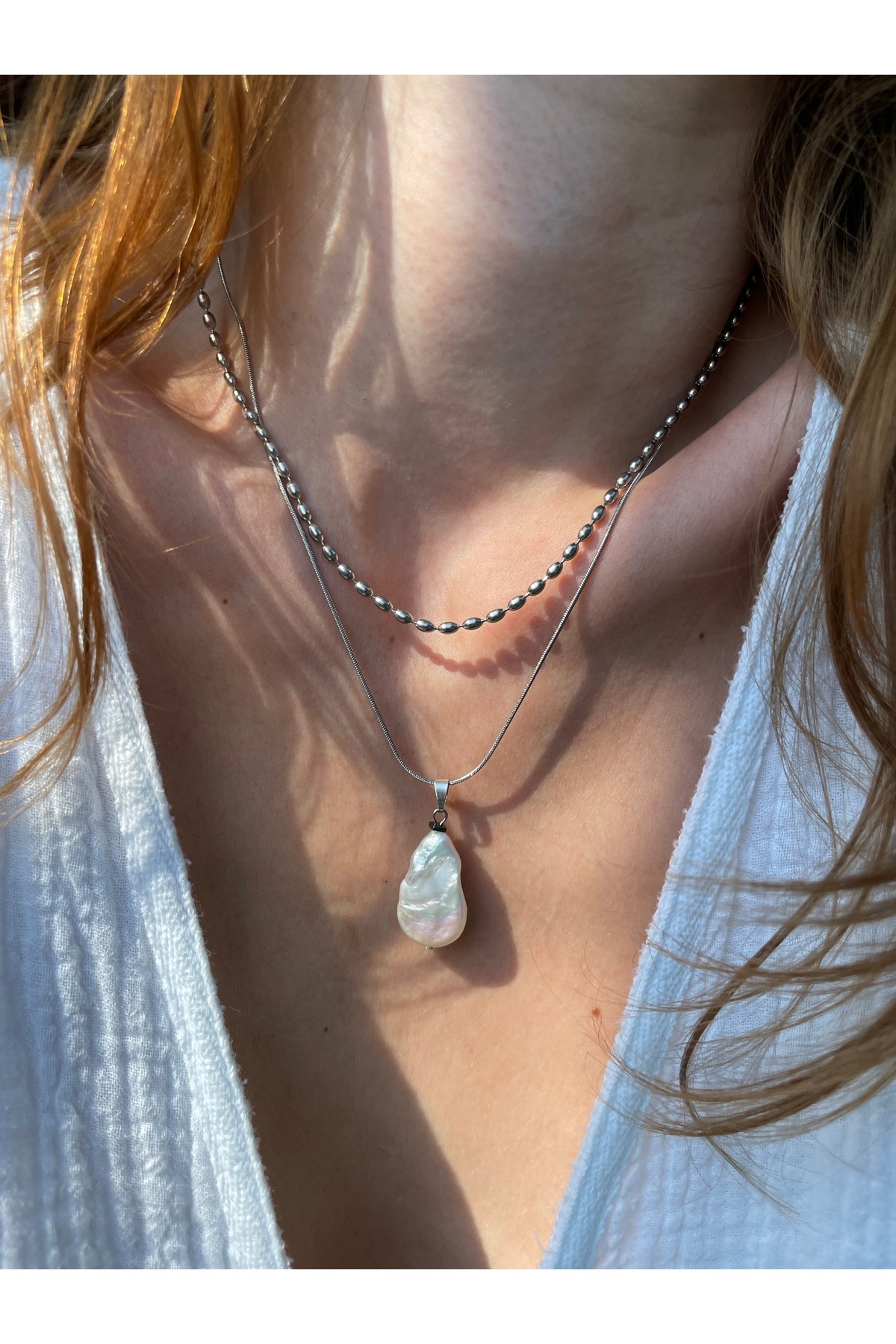 Gerçek İnci Uçlu Silver Çelik Kolye Gerçek İnci Uçlu Silver Çelik Kolye 86544nbcffffcinchgf تک سایز