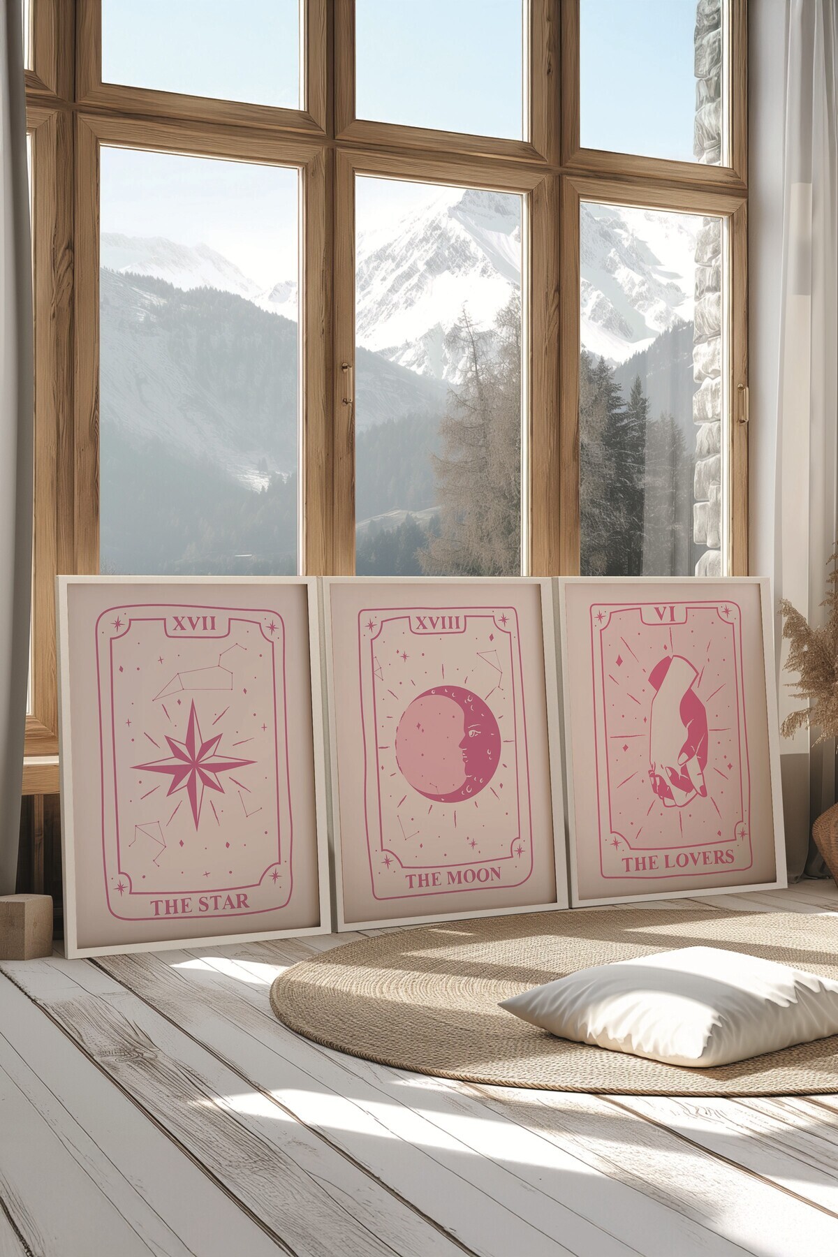 Beyaz Tablo Seti, 3 Adet Beyaz Çerçeveli Poster tarot cards Model No:300898, Pembe Duvar Dekoru Beyaz Tablo Seti, 3 Adet Beyaz Çerçeveli Poster tarot cards Model No:300898, Pembe Duvar Dekoru Ç_300898 70 x 100