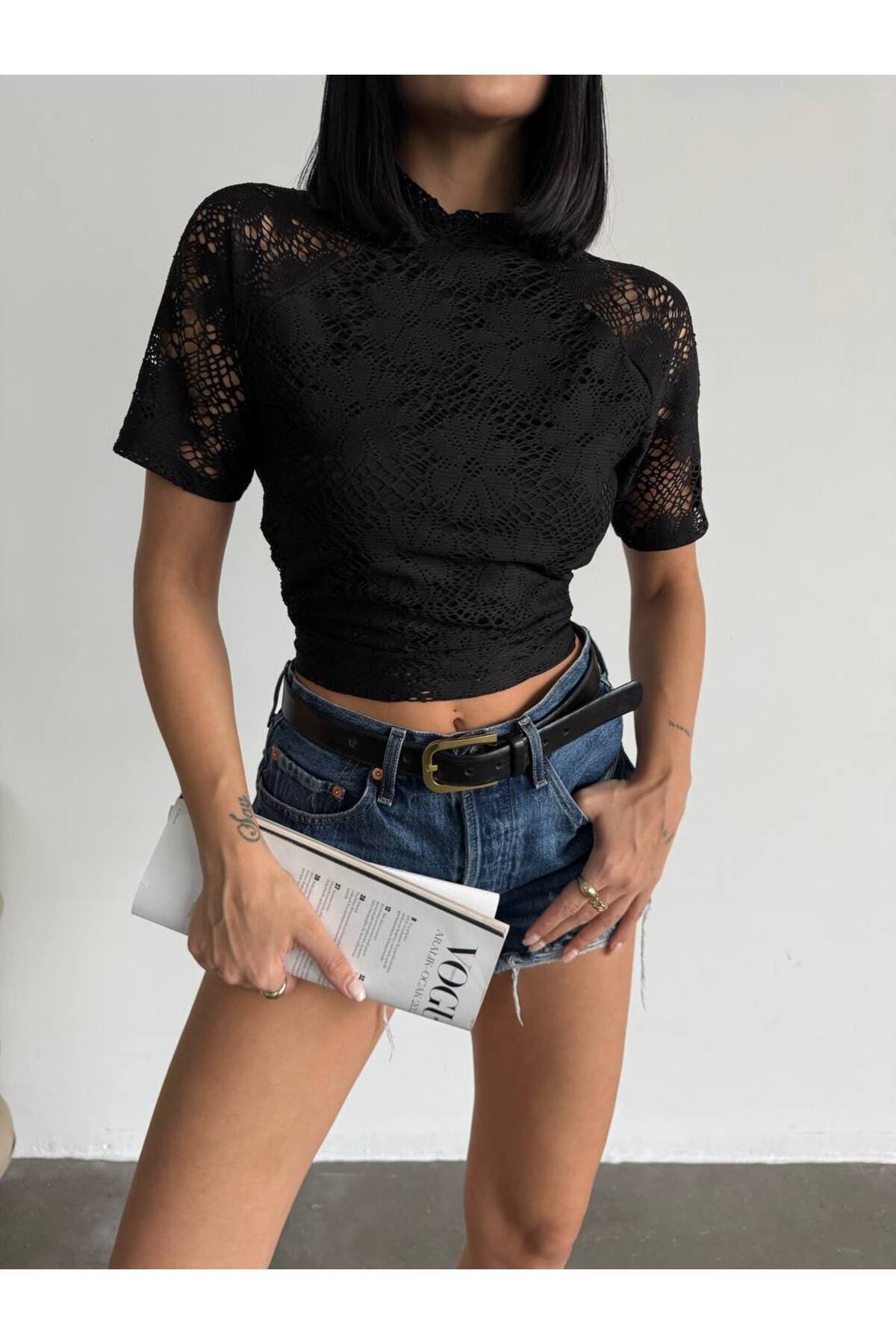KADIN TÜL DETAYLI KRUVAZE YAKA KOLSUZ ESNEK KUMAŞ BLUZ KADIN TÜL DETAYLI KRUVAZE YAKA KOLSUZ ESNEK KUMAŞ BLUZ WTXBLZS25Y0088157 XL