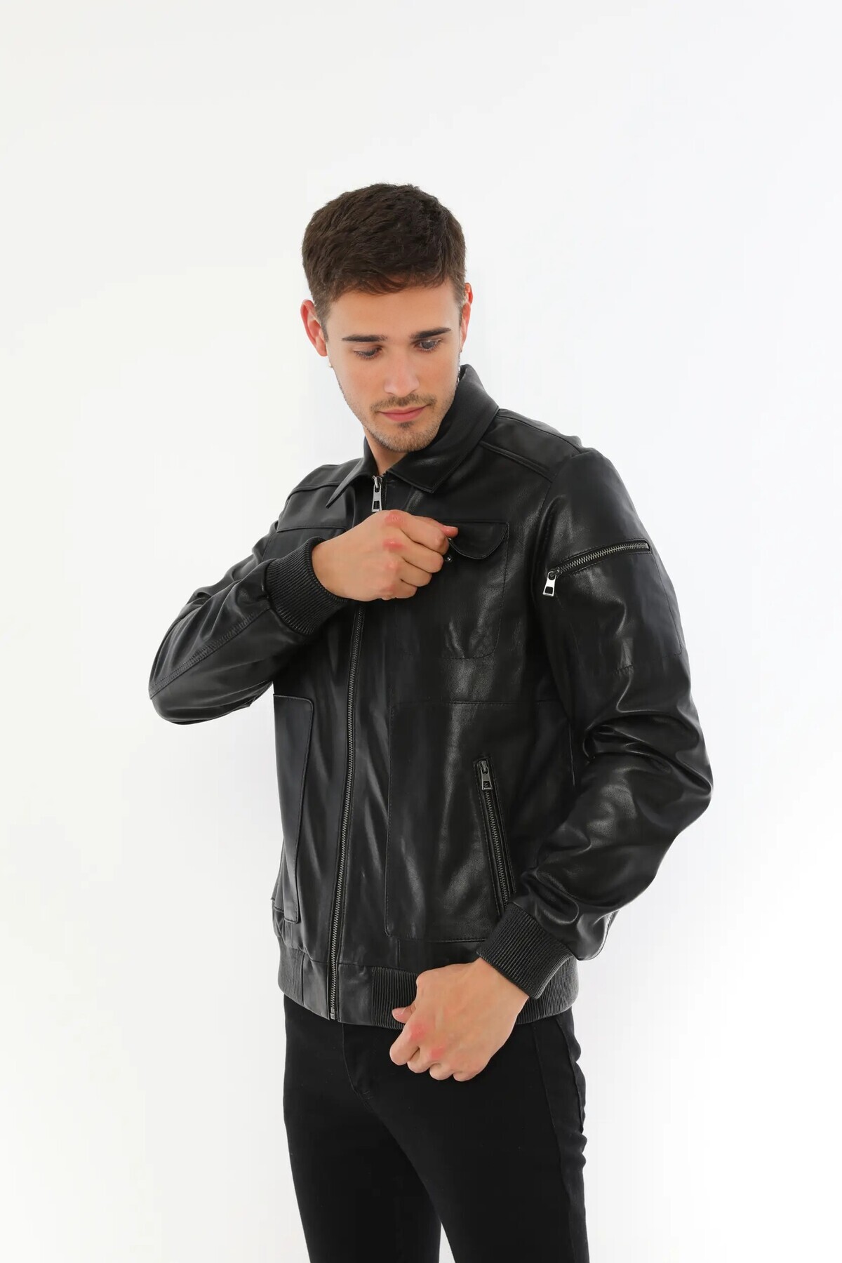 İŞLEMELİ ŞİŞME ERKEK DERİ CEKET İŞLEMELİ ŞİŞME ERKEK DERİ CEKET L02905 2XL