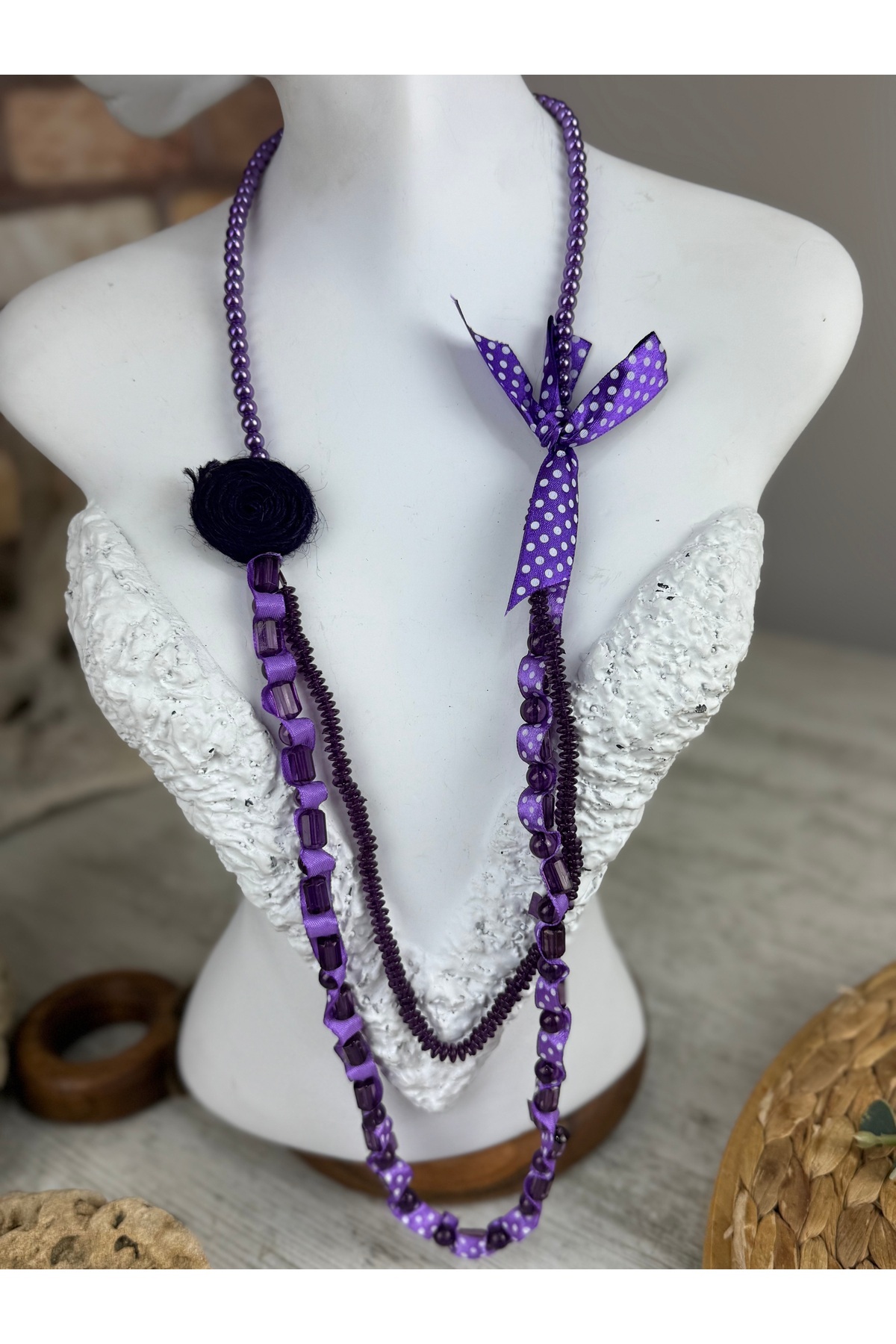 Puantiyeli halkalı saten el yapımı Vintage kolye Puantiyeli halkalı saten el yapımı Vintage kolye puantiye3 M