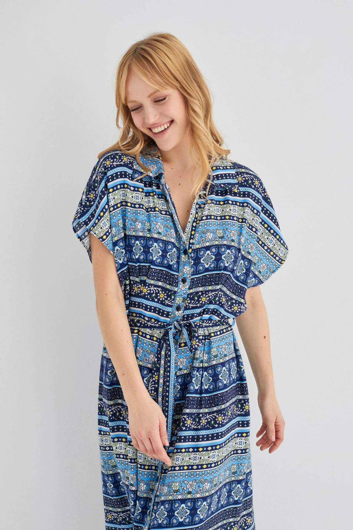 Kadın V Yaka Kısa Kollu Desenli Elbise Kadın V Yaka Kısa Kollu Desenli Elbise 25SWS6824 XL