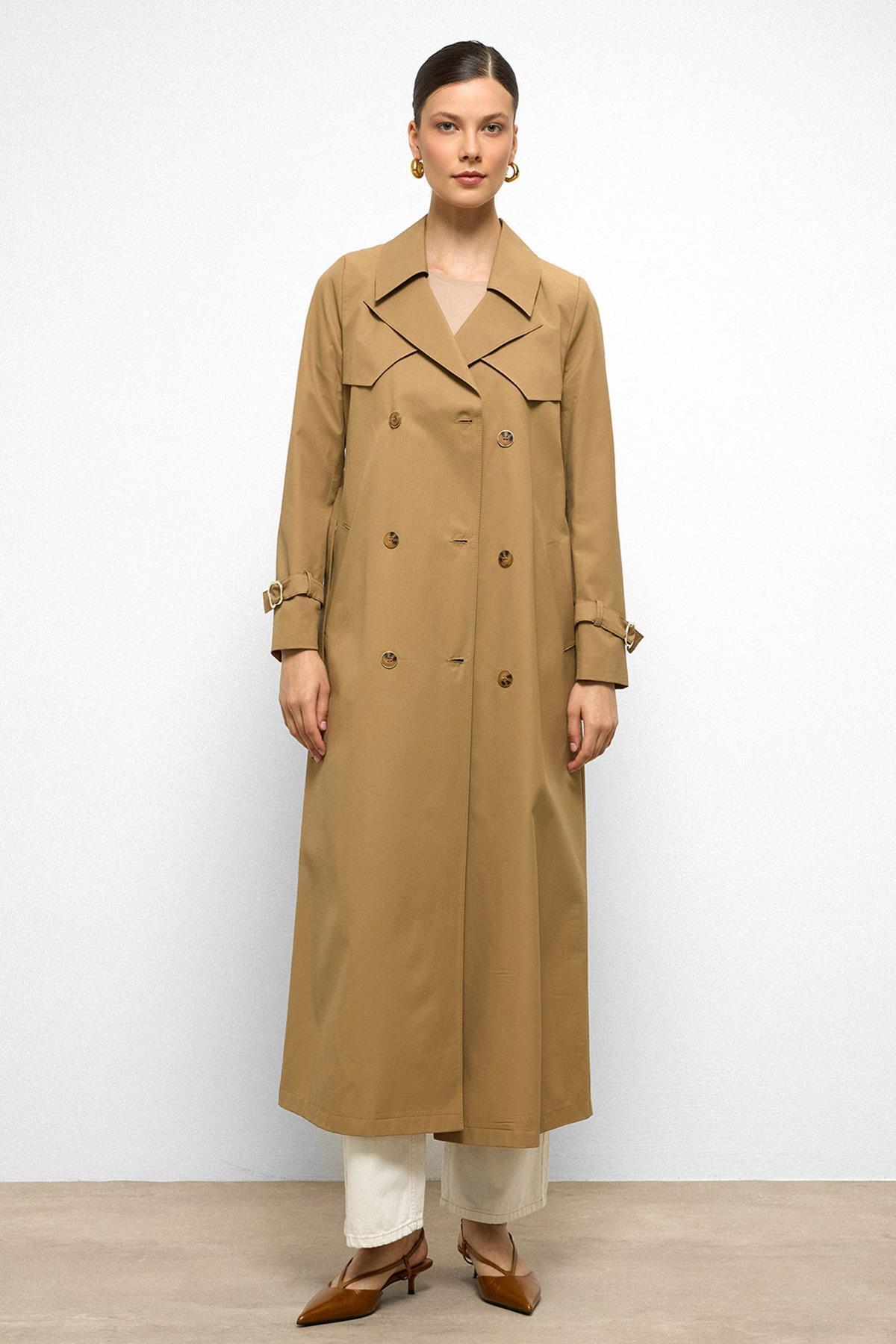 Pelerin Detaylı Su İtici Özellikli Kruvaze Uzun Trençkot KAMEL 6761 Pelerin Detaylı Su İtici Özellikli Kruvaze Uzun Trençkot KAMEL 6761 42