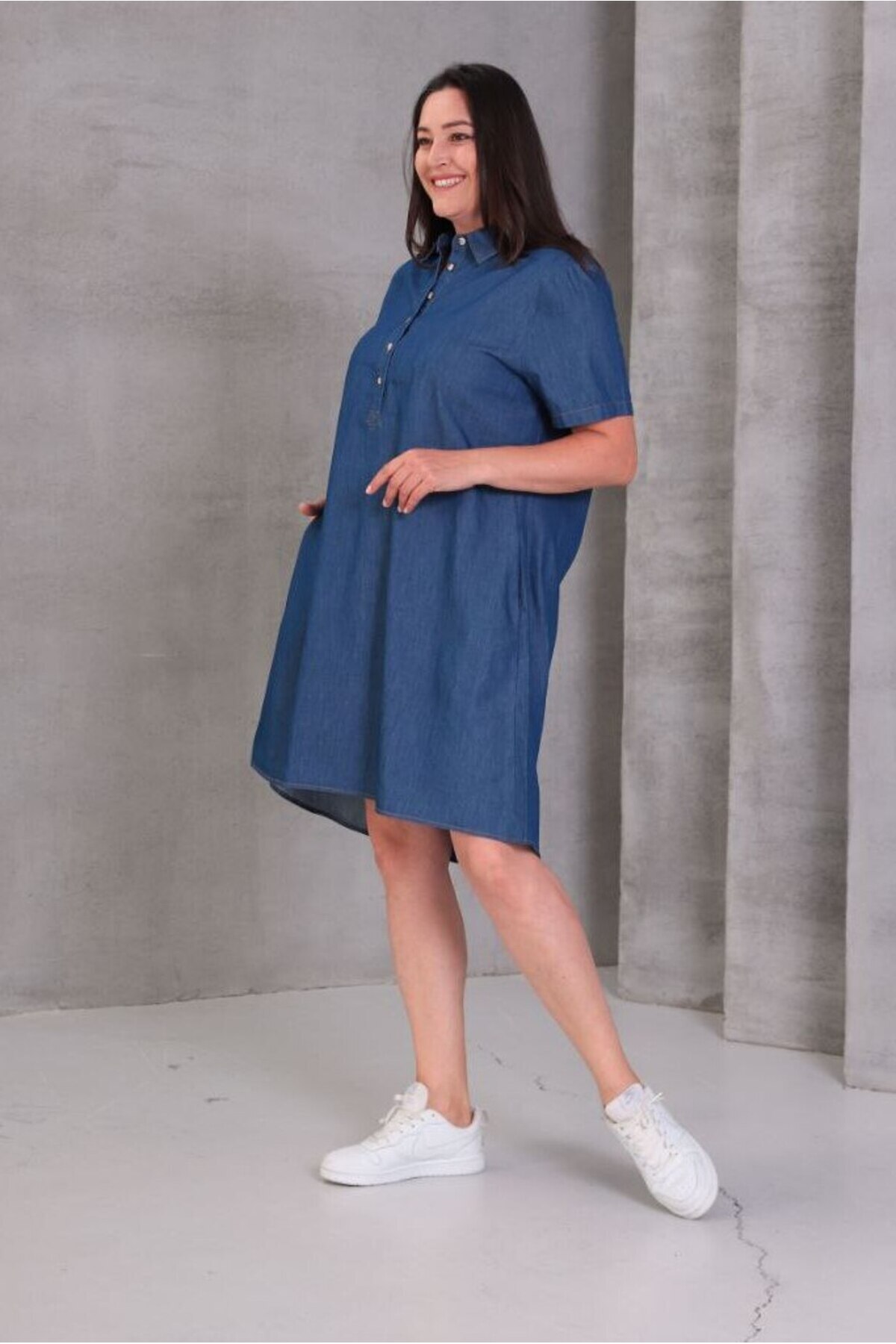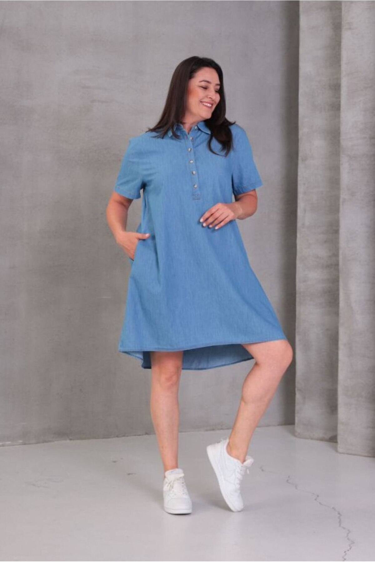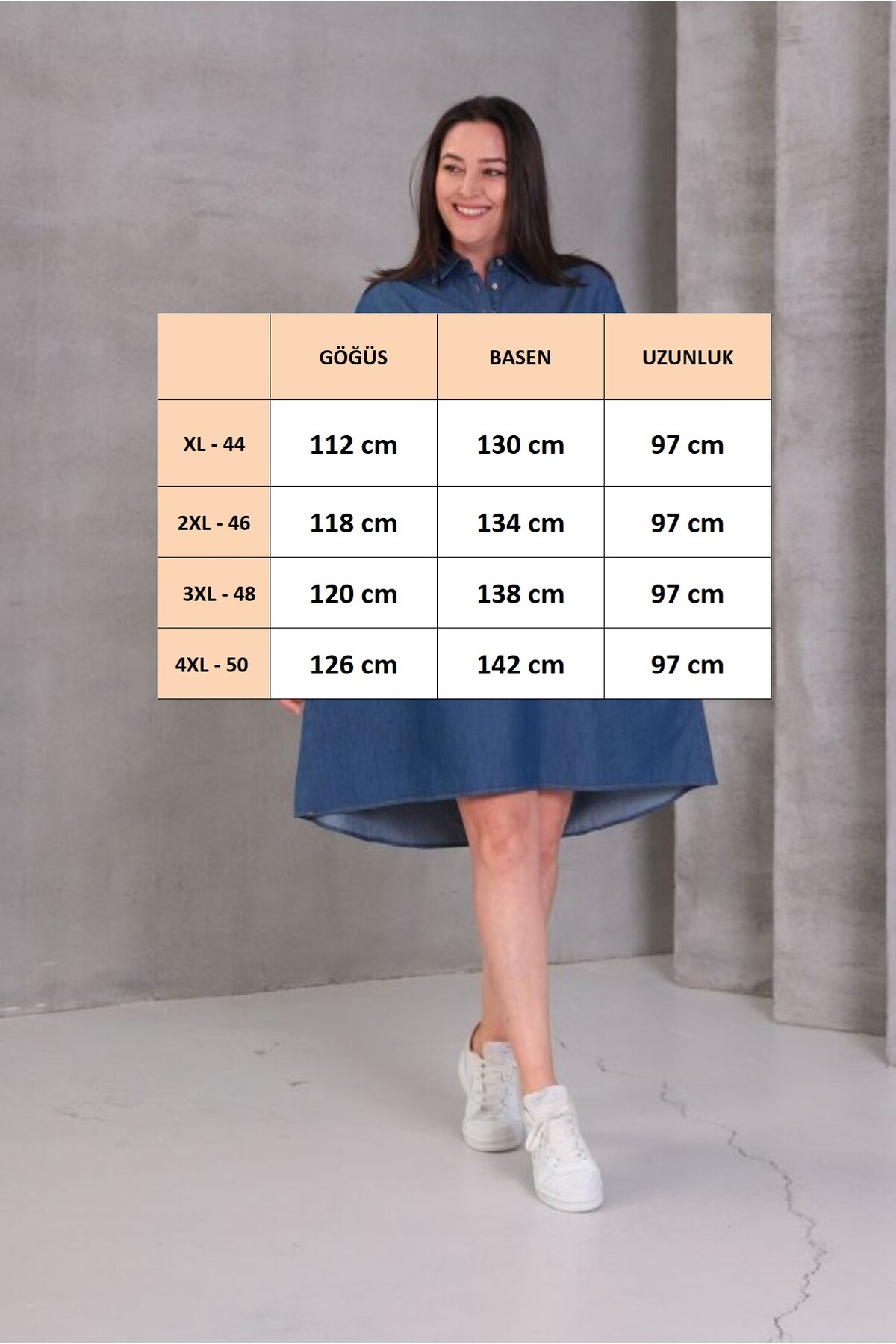 Kadın Büyük Beden Yarım Pat Düğmeli Gömlek Yaka Kısa Kol Cepli Denim Elbise ( Esnek Değildir ) Kadın Büyük Beden Yarım Pat Düğmeli Gömlek Yaka Kısa Kol Cepli Denim Elbise ( Esnek Değildir ) BT25YB110067 50