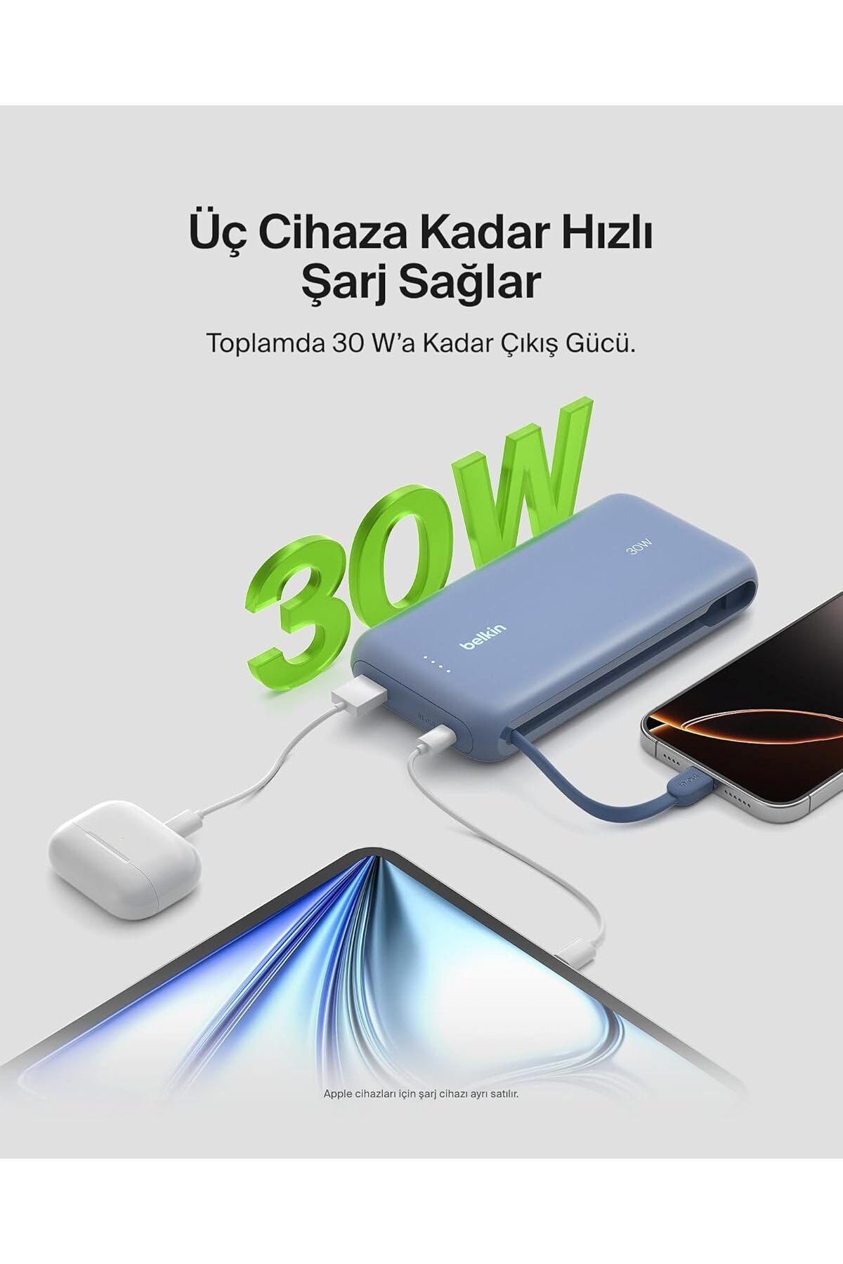 BoostCharge Powerbank, 20K Entegre Kablolu Taşınabilir Güç Kaynağı, 30 W Hızlı Şarj, USB-C BoostCharge Powerbank, 20K Entegre Kablolu Taşınabilir Güç Kaynağı, 30 W Hızlı Şarj, USB-C Belkin BoostCharge تک سایز