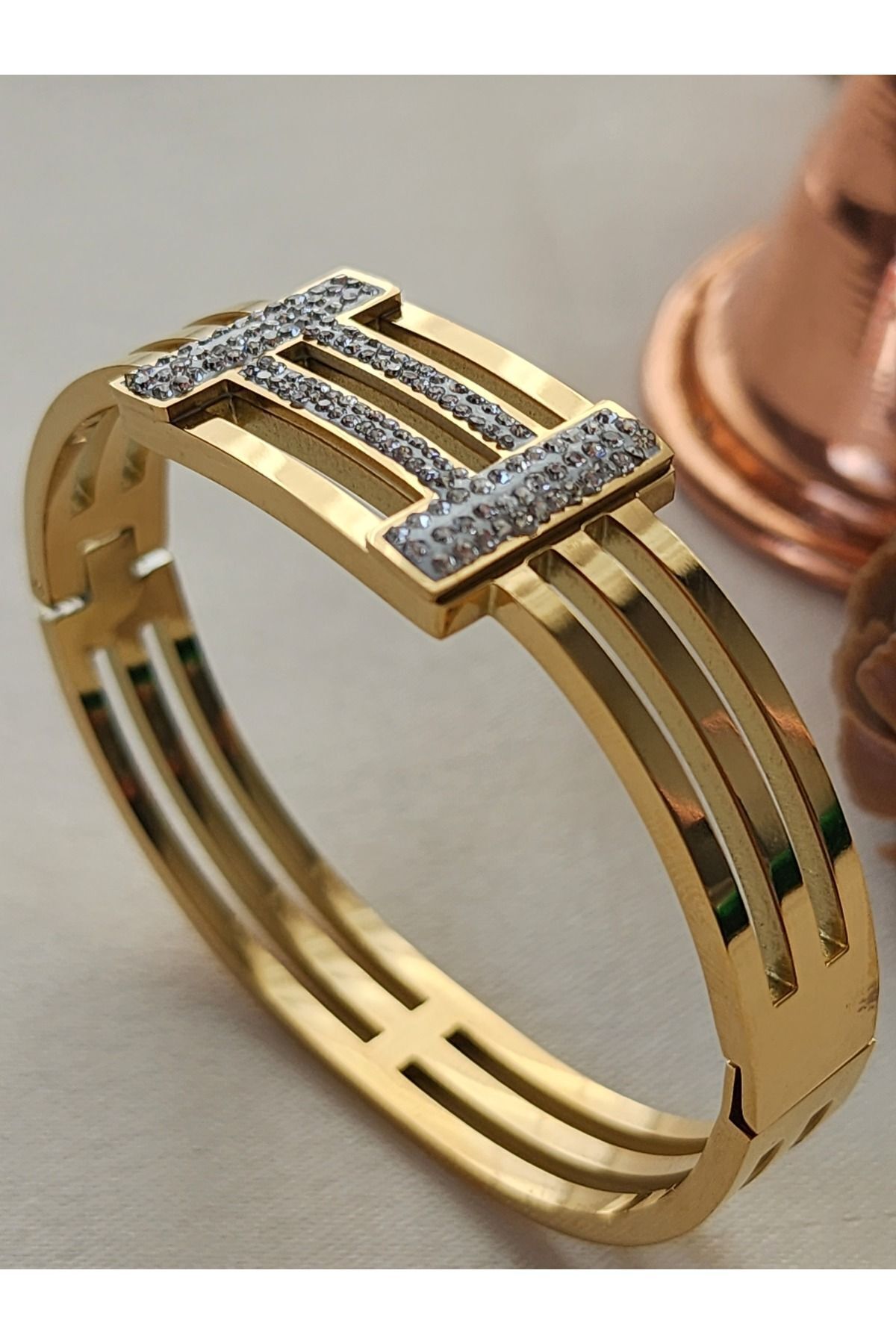 Kelebek Figürlü Altın Renk Kelepçe Bileklik Kelebek Figürlü Altın Renk Kelepçe Bileklik BL130 18-21 cm
