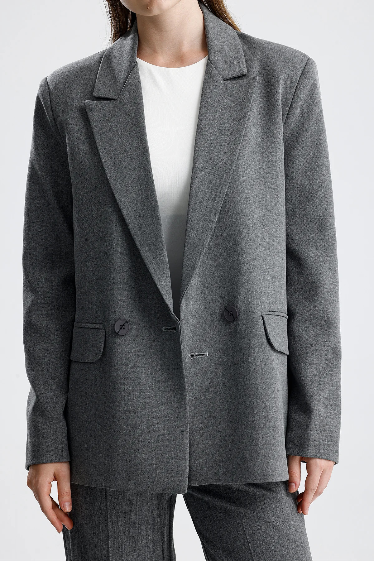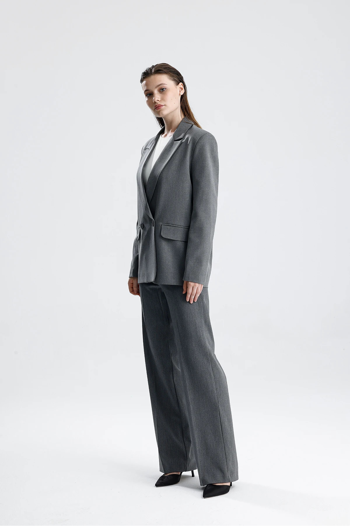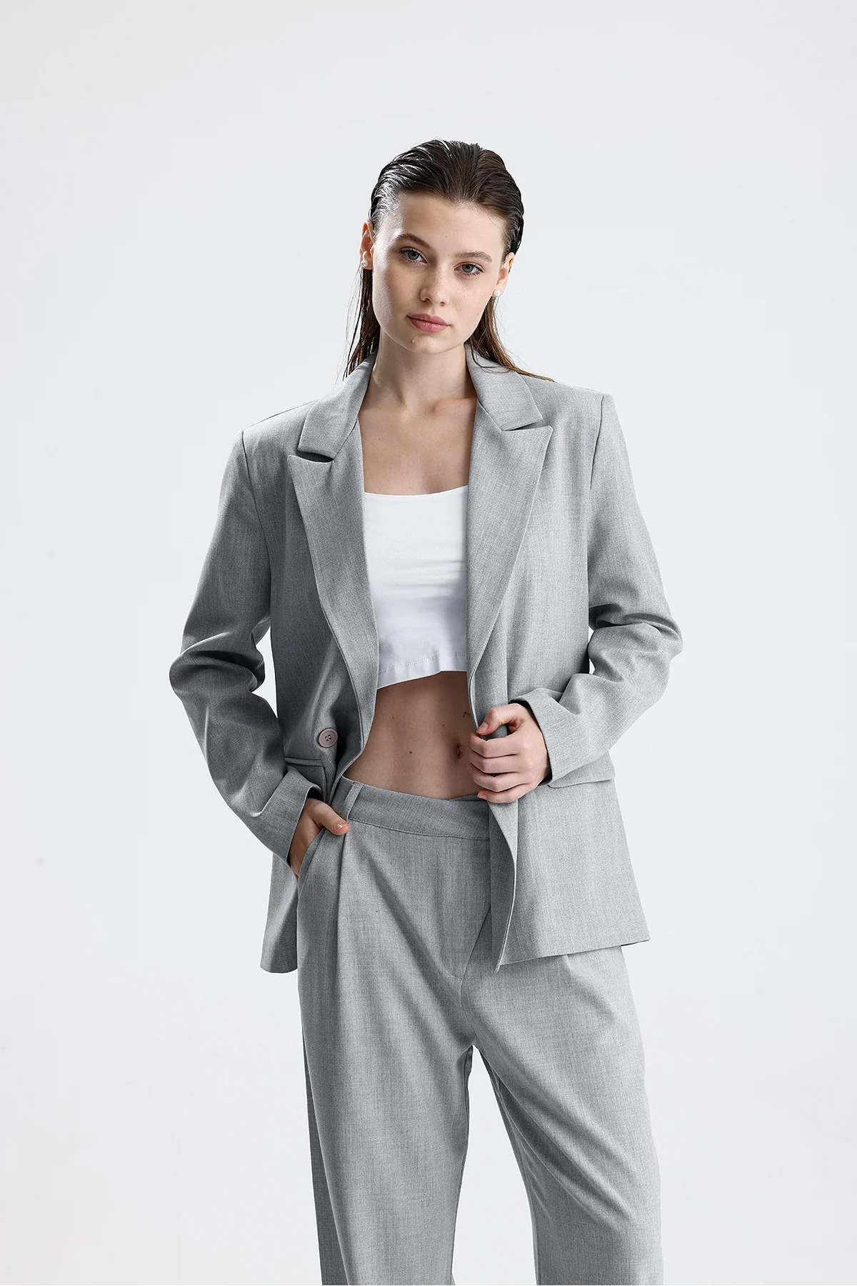 Kadın Oversize Düğmeli Takım Blazer Ceket Kadın Oversize Düğmeli Takım Blazer Ceket C-4127-GRİ XL