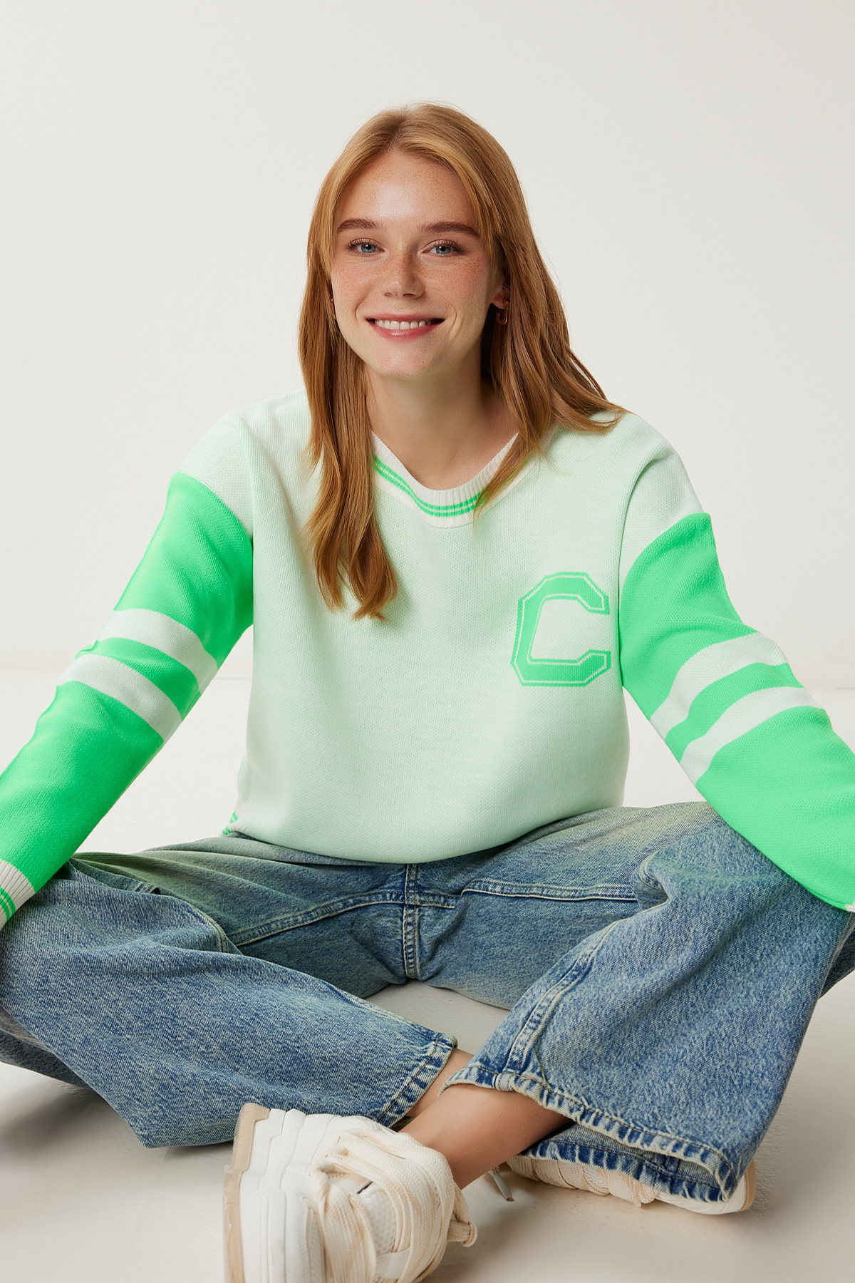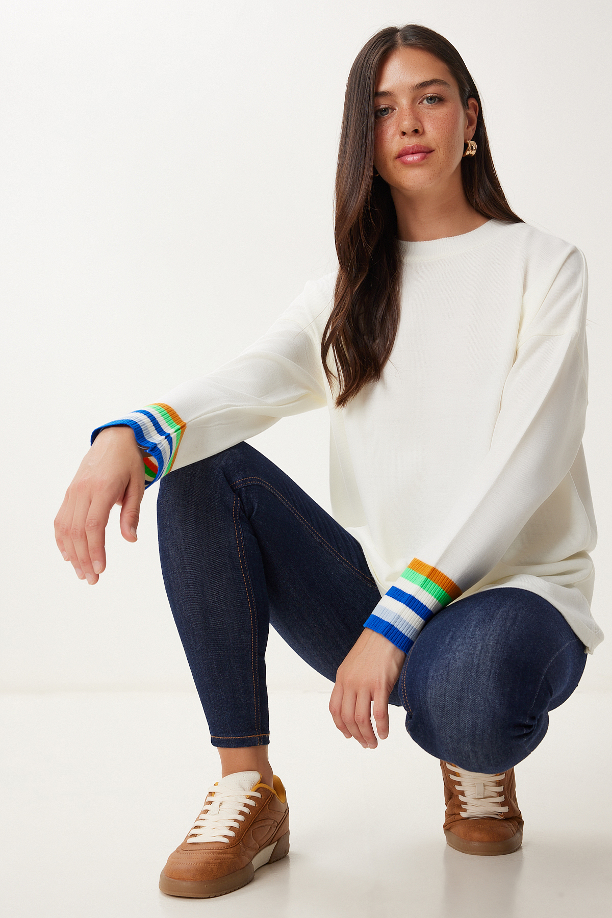 Kadın Sarı Krem Çizgili Oversize Triko Kazak Kİ00162 Kadın Sarı Krem Çizgili Oversize Triko Kazak Kİ00162 تک سایز