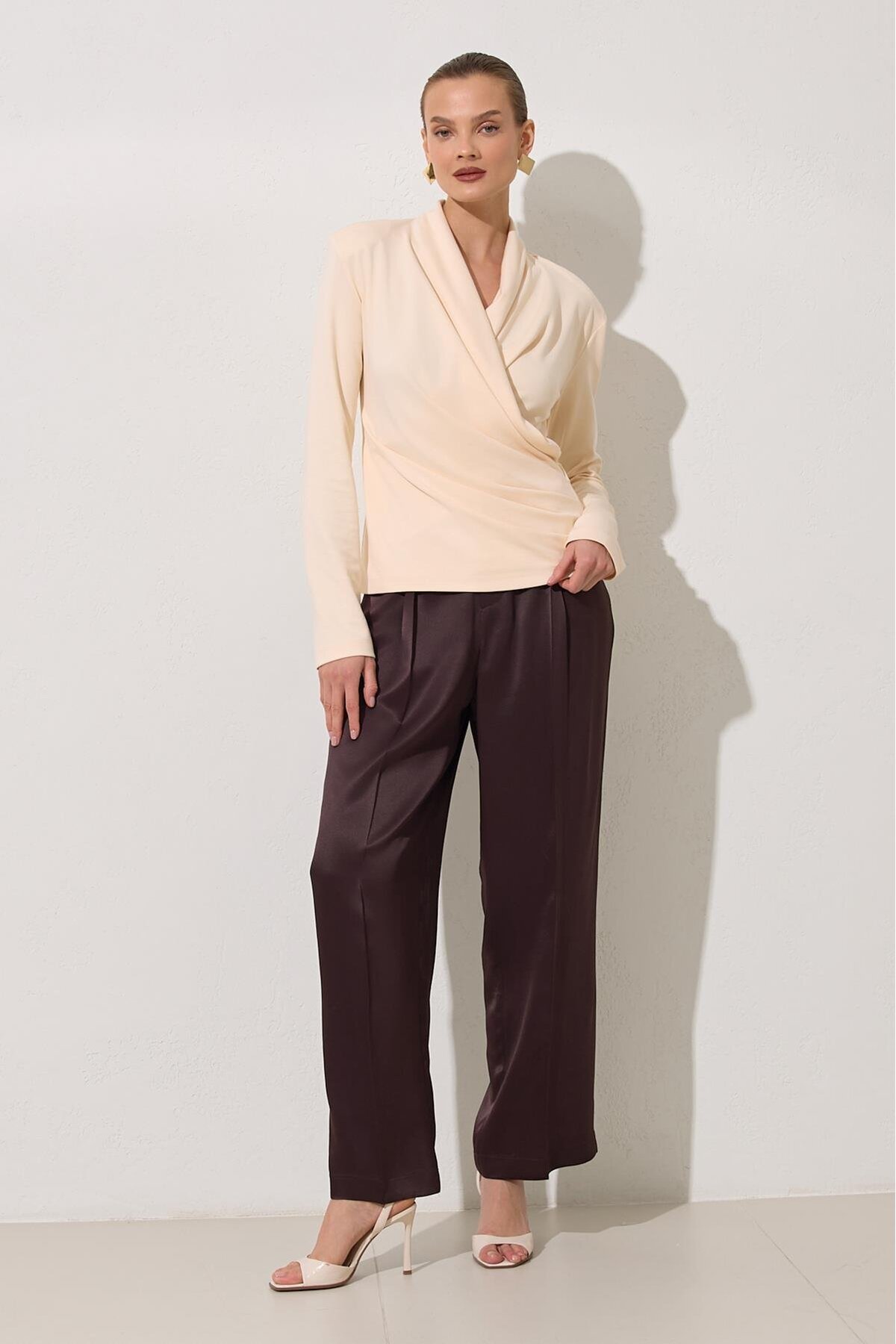 Krem Drapeli Uzun Kollu V Yaka Bluz Krem Drapeli Uzun Kollu V Yaka Bluz ST20250W30138901 XL