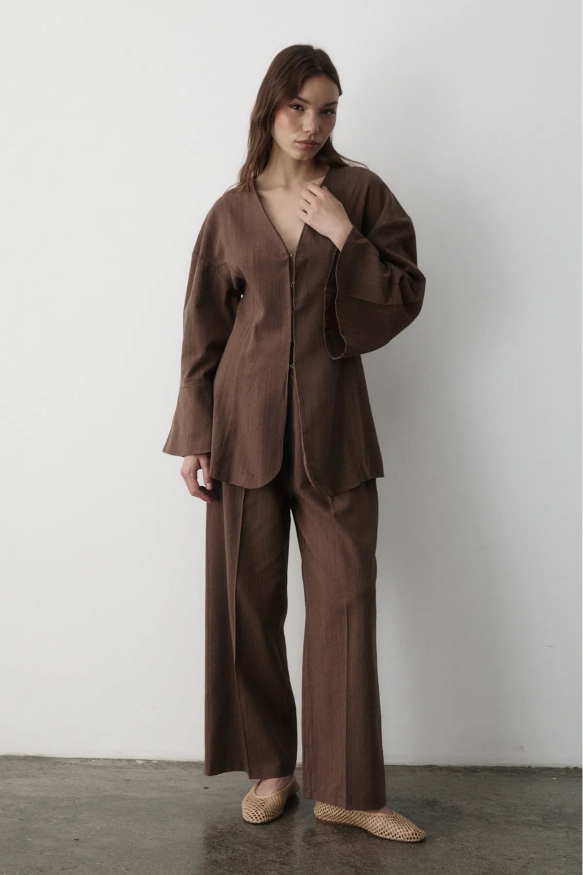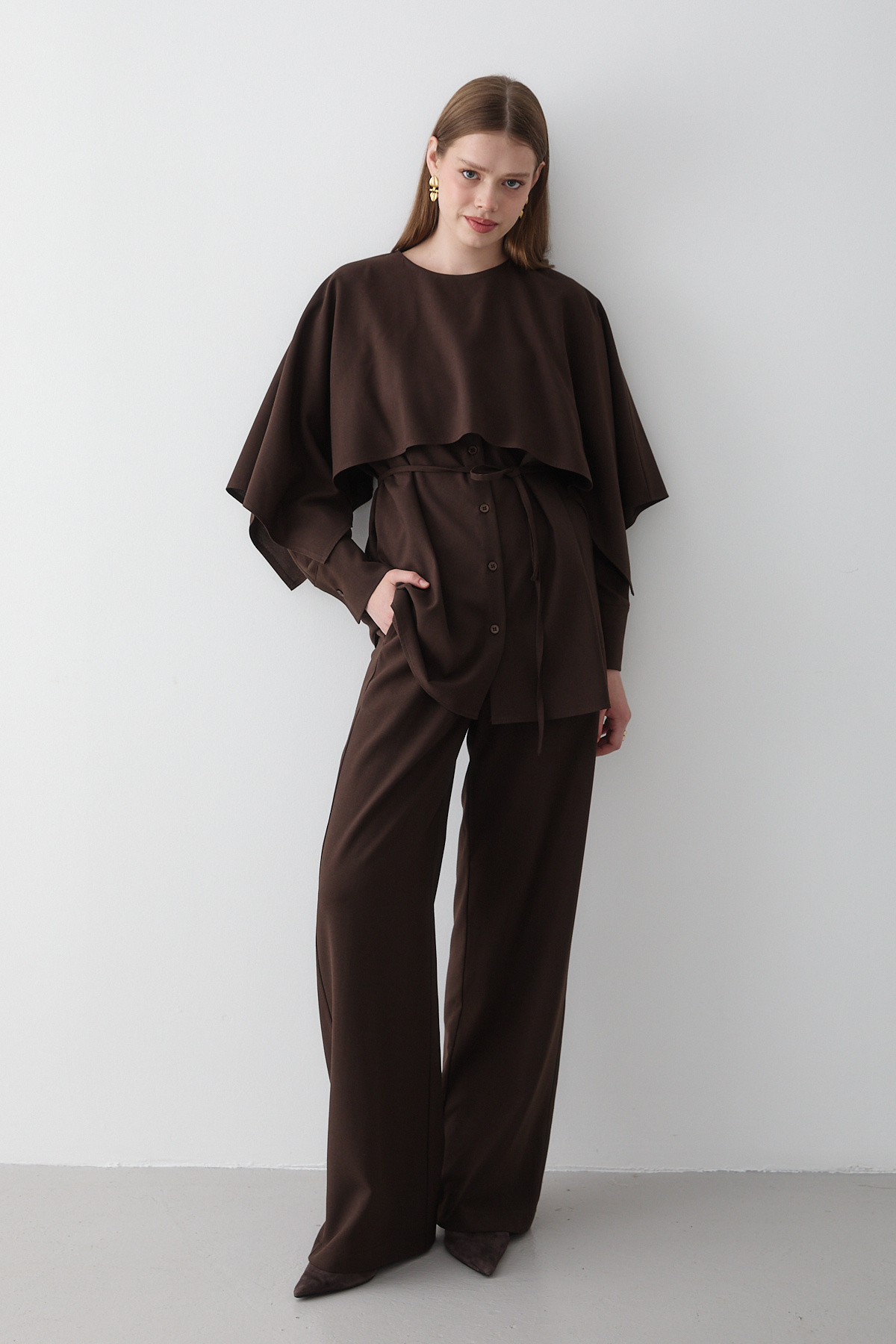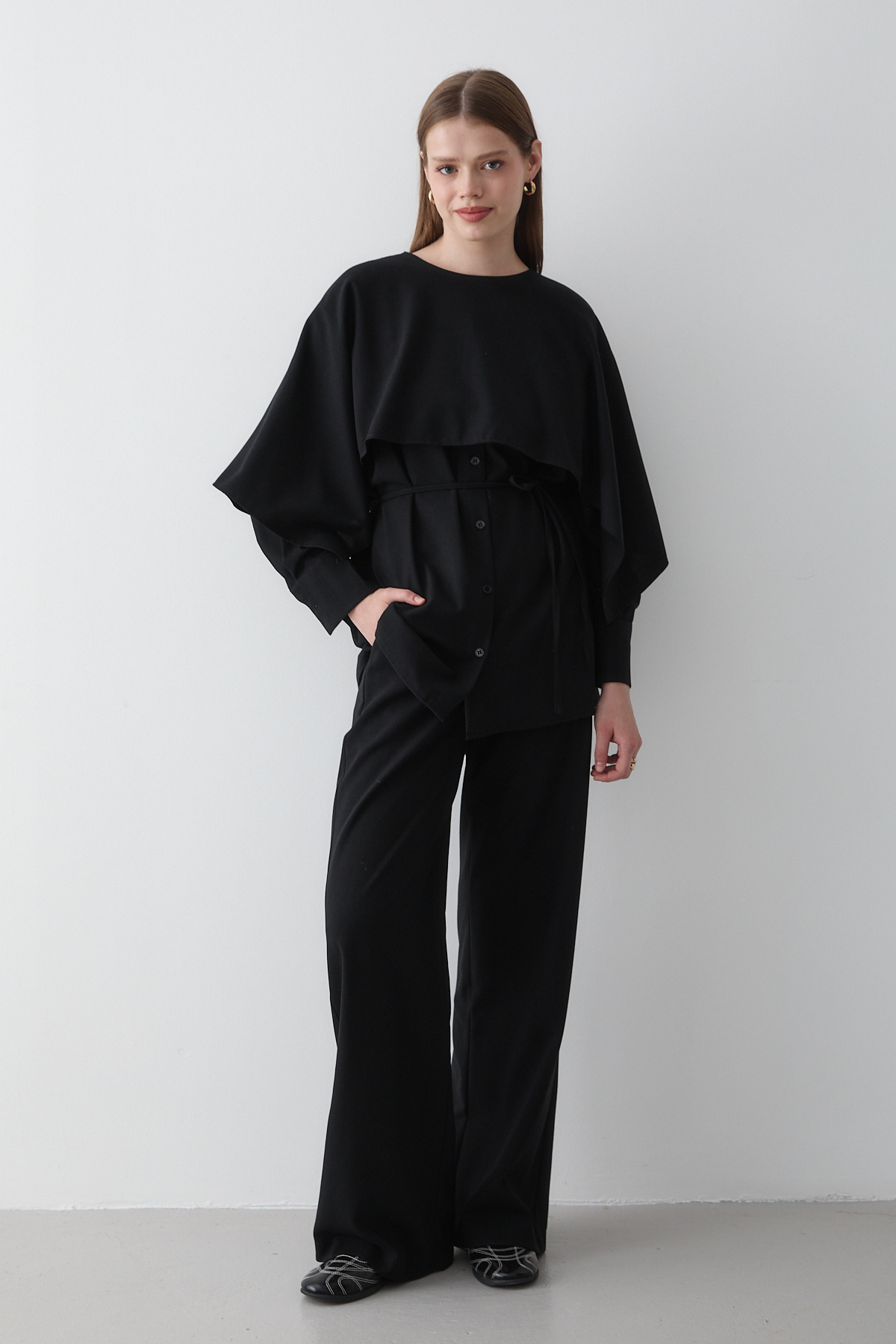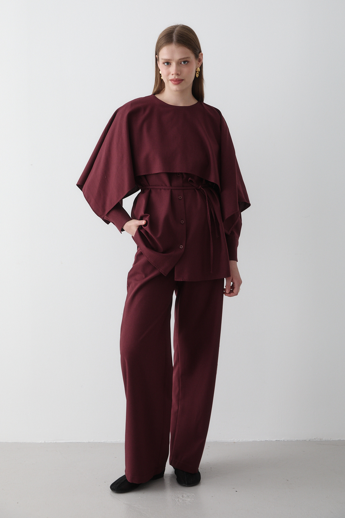 Kadın Drapeli Kuşaklı Bluz & Bol Paça Beli Lastikli Pantolon Takım Kadın Drapeli Kuşaklı Bluz & Bol Paça Beli Lastikli Pantolon Takım 8625 XL