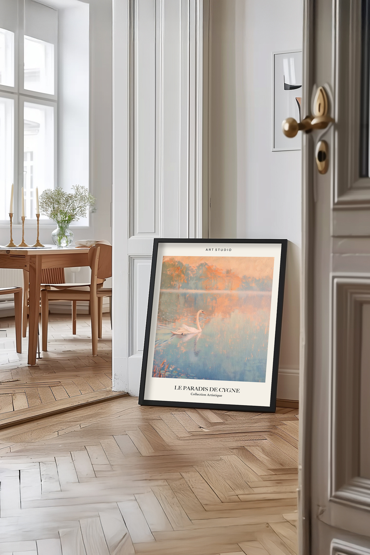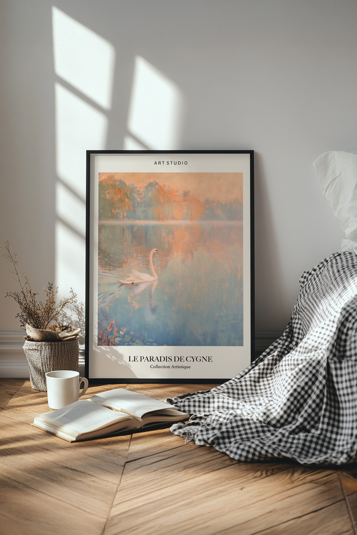 Yağlı boya efektli kuğulu siyah ahşap çerçeveli tablo Yuna74 Yağlı boya efektli kuğulu siyah ahşap çerçeveli tablo Yuna74 yuna74 50 x 70