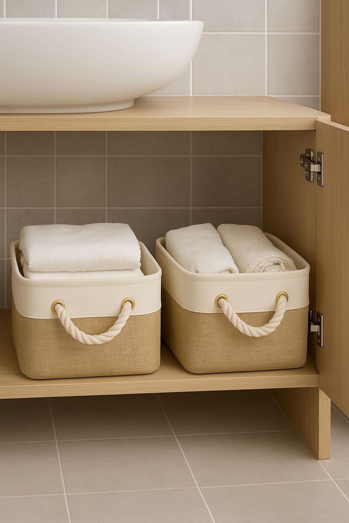 2'li Jüt Kumaş Dekoratif Sepet – Orta Boy, Banyo, Oyuncak veya Dolap İçi Organizer 2'li Jüt Kumaş Dekoratif Sepet – Orta Boy, Banyo, Oyuncak veya Dolap İçi Organizer LX.B.G-2'li تک سایز