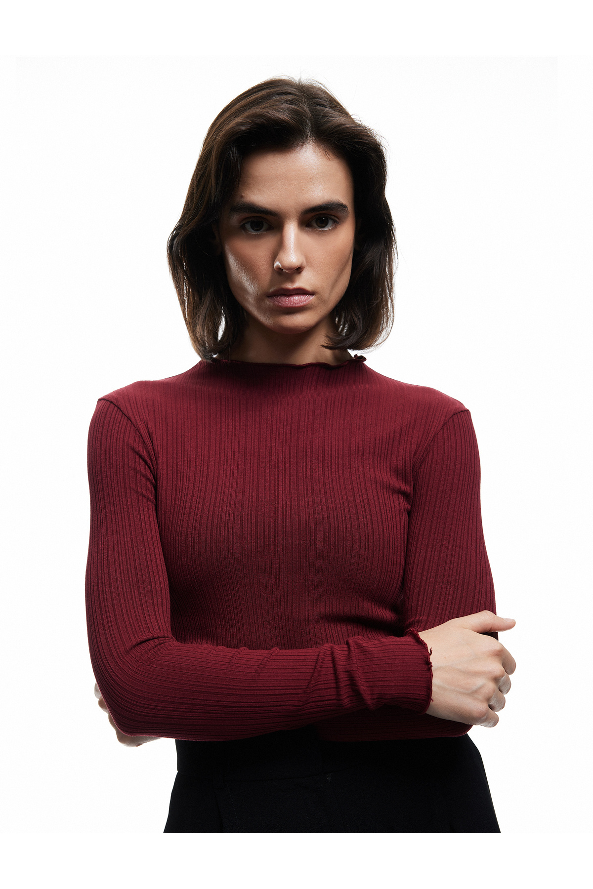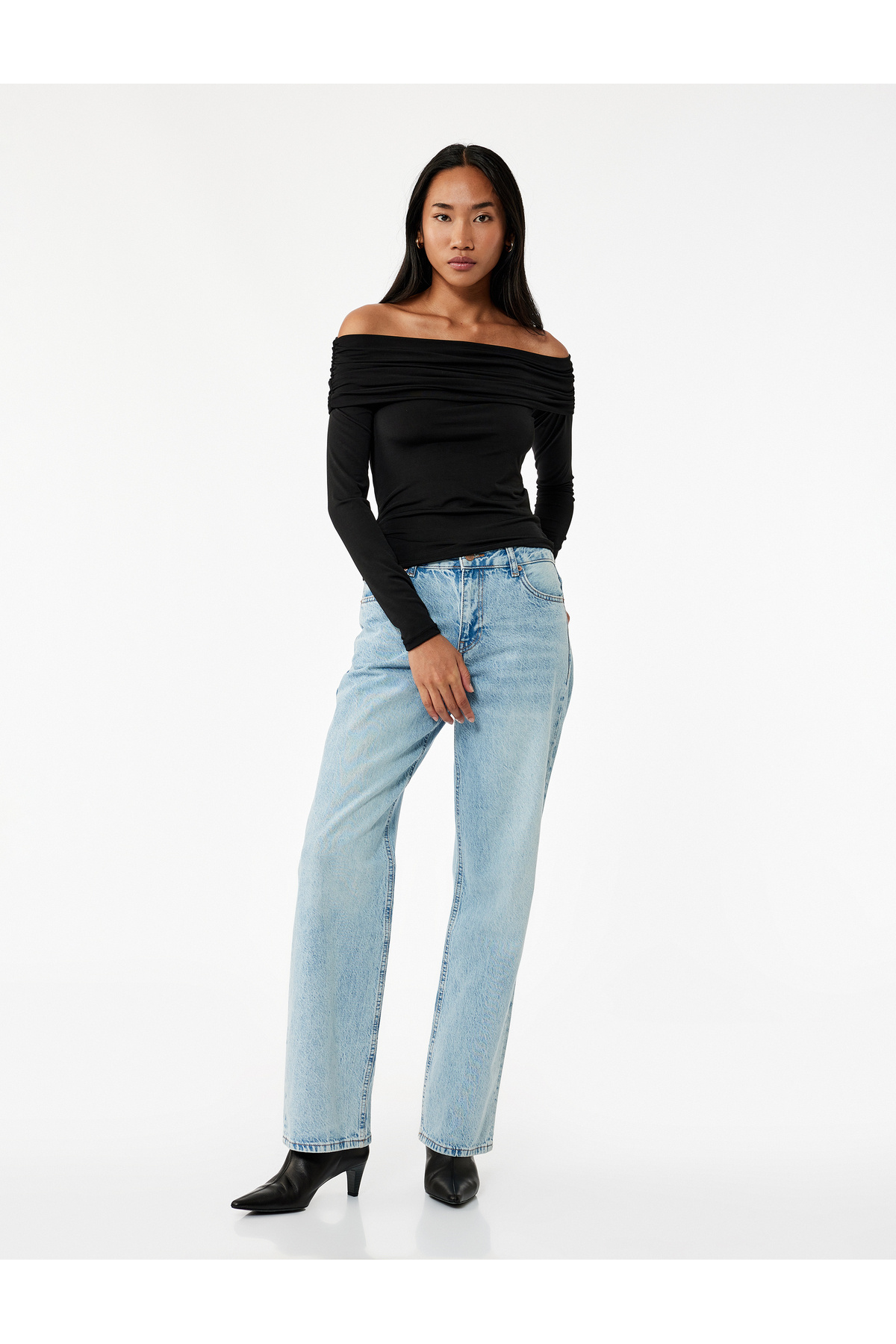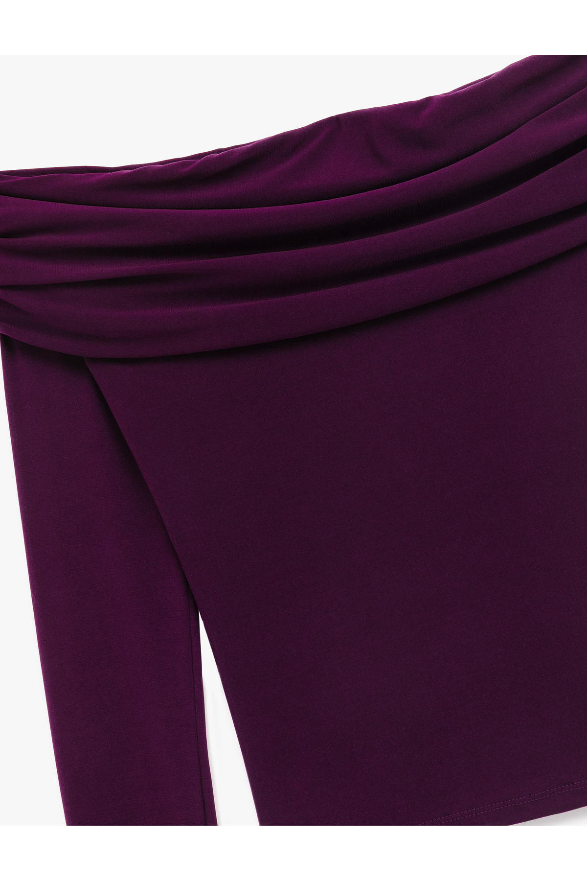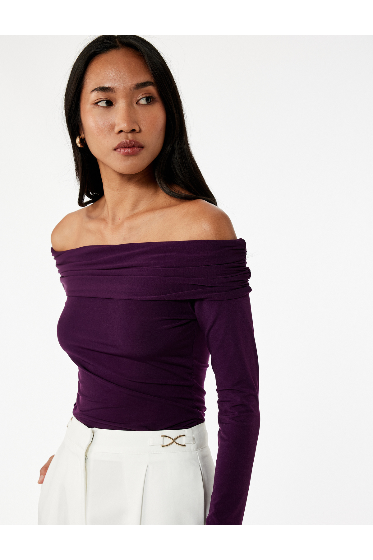 Slim Fit Uzun Kollu Drapeli Omzu Açık Tişört Slim Fit Uzun Kollu Drapeli Omzu Açık Tişört 6WAK80032EK XL