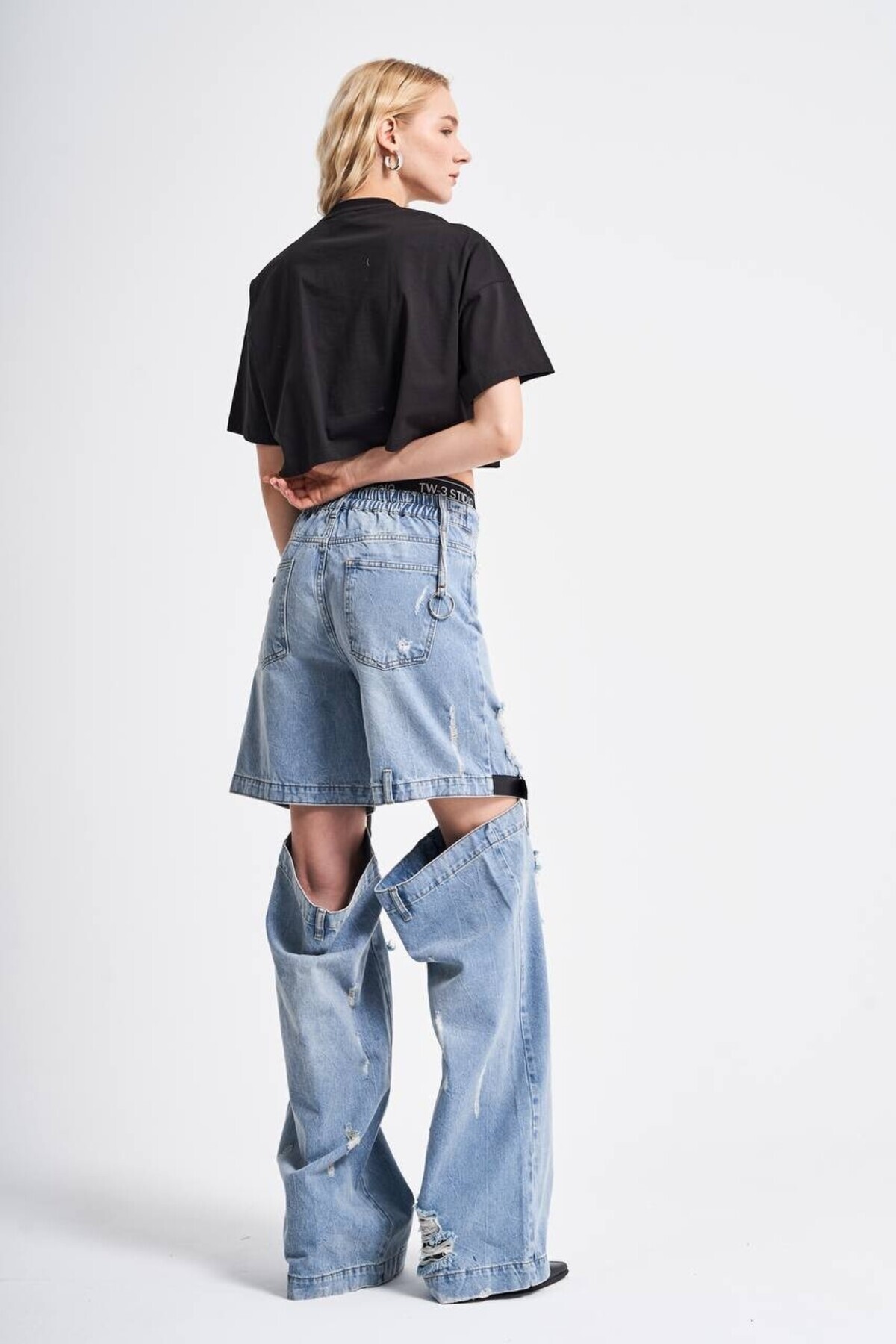 Kadın Deri Toka Detaylı Şort Görünümlü Tasarım Jean Kadın Deri Toka Detaylı Şort Görünümlü Tasarım Jean TW3-558 FULL L