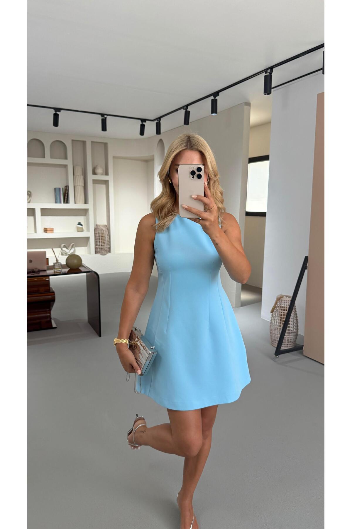Belden Oturtmalı Bebek Mavi Çan Elbise Belden Oturtmalı Bebek Mavi Çan Elbise ELB-0736-B.MAVİ 42
